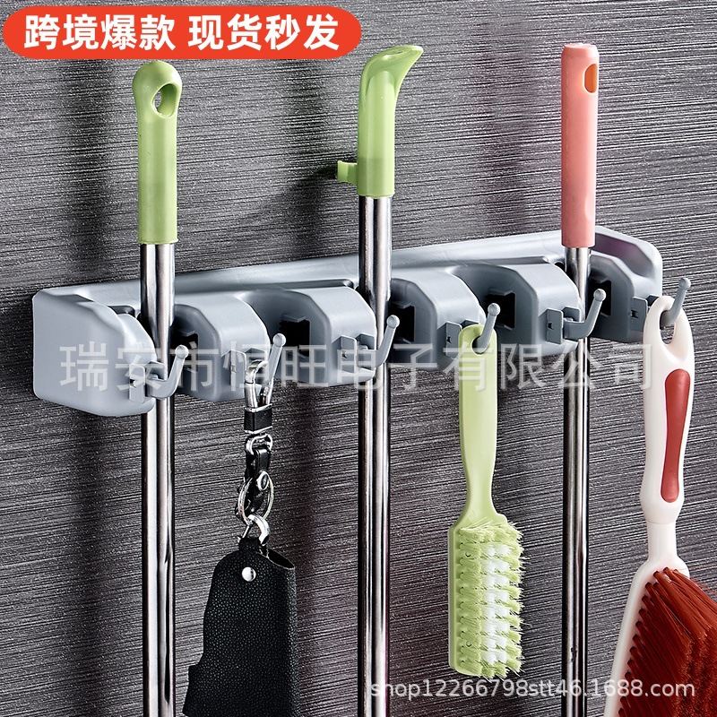 クロスボーダー浴室モップフックハンガー穴なし壁掛けトイレモップ収納棚強力スナップほうきクリップ