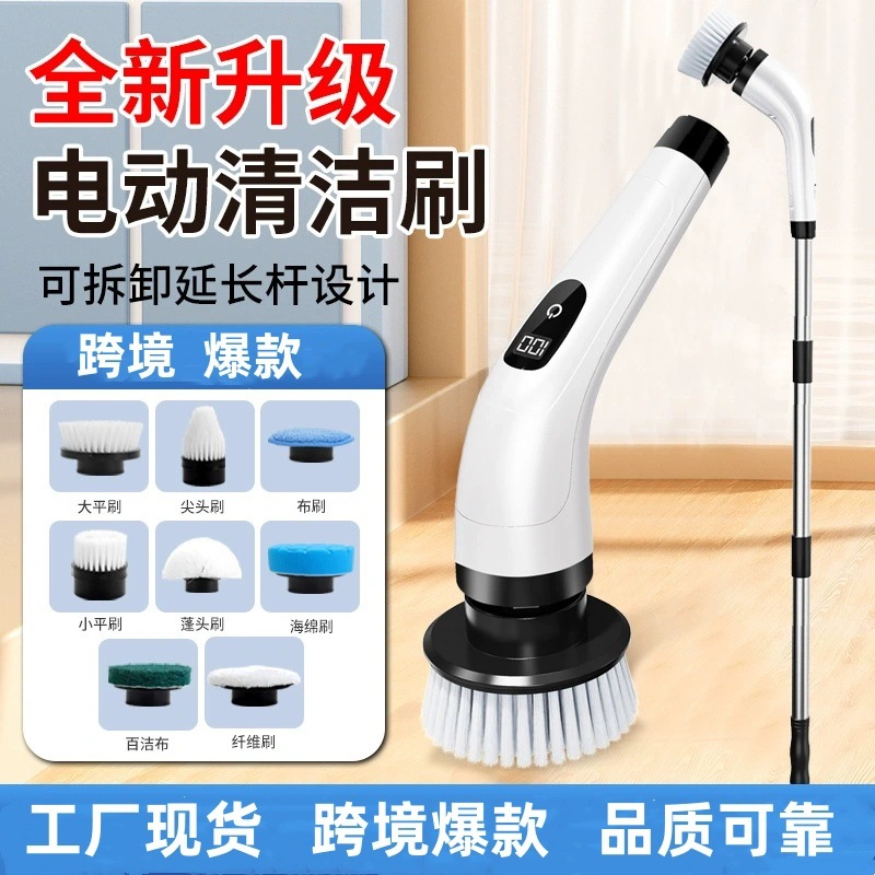 クロスボーダー起爆多機能電動清潔ブラシ浴室ガラス台所トイレブラシ長さ両用ハンディクリーナー