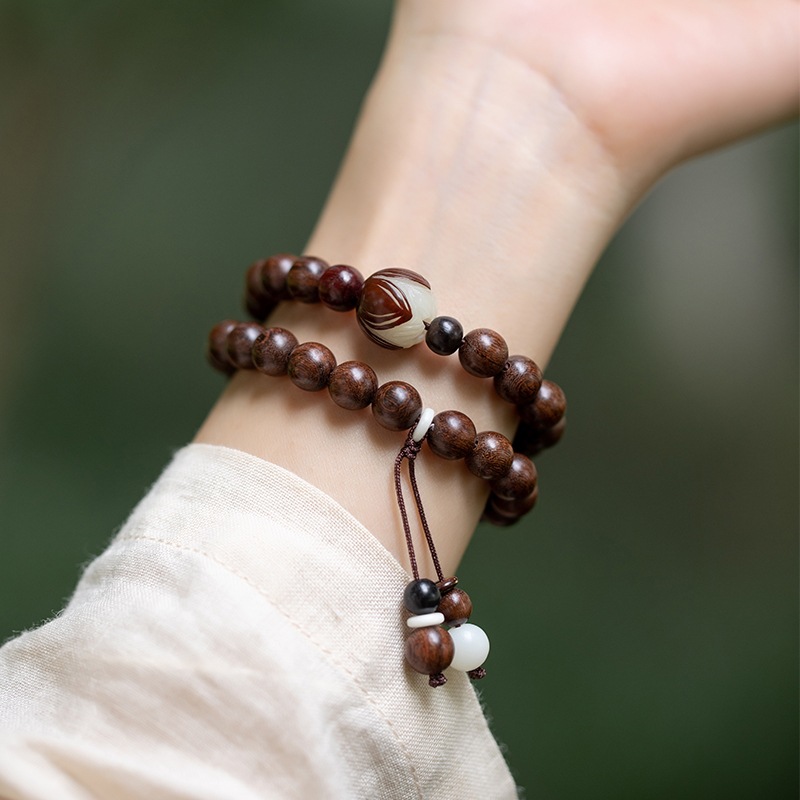 黒花梨8mm手串ブレスレット白玉菩提男女スタイルDIY森系インスタ風銀数珠仏珠高級感