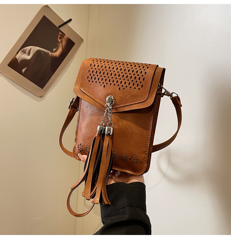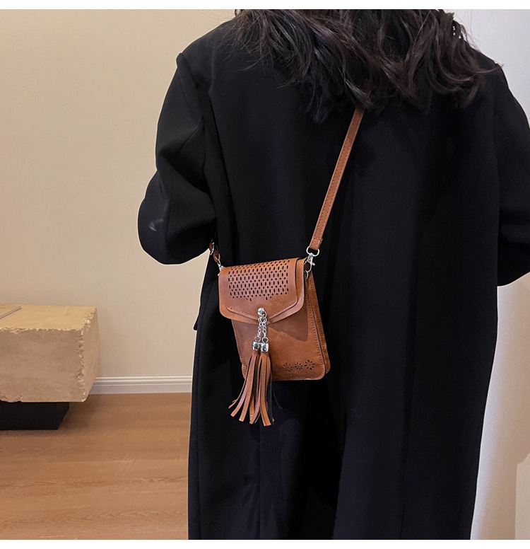 新しい携帯電話バッグ女性のバッグ小さなバッグタッセルバッグレトロサドルバッグファッショントレンドショルダーバッグシンプルなクロスボディバッグ