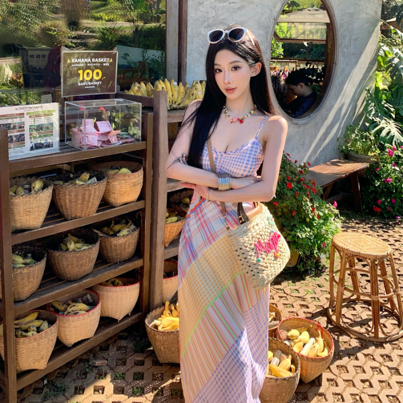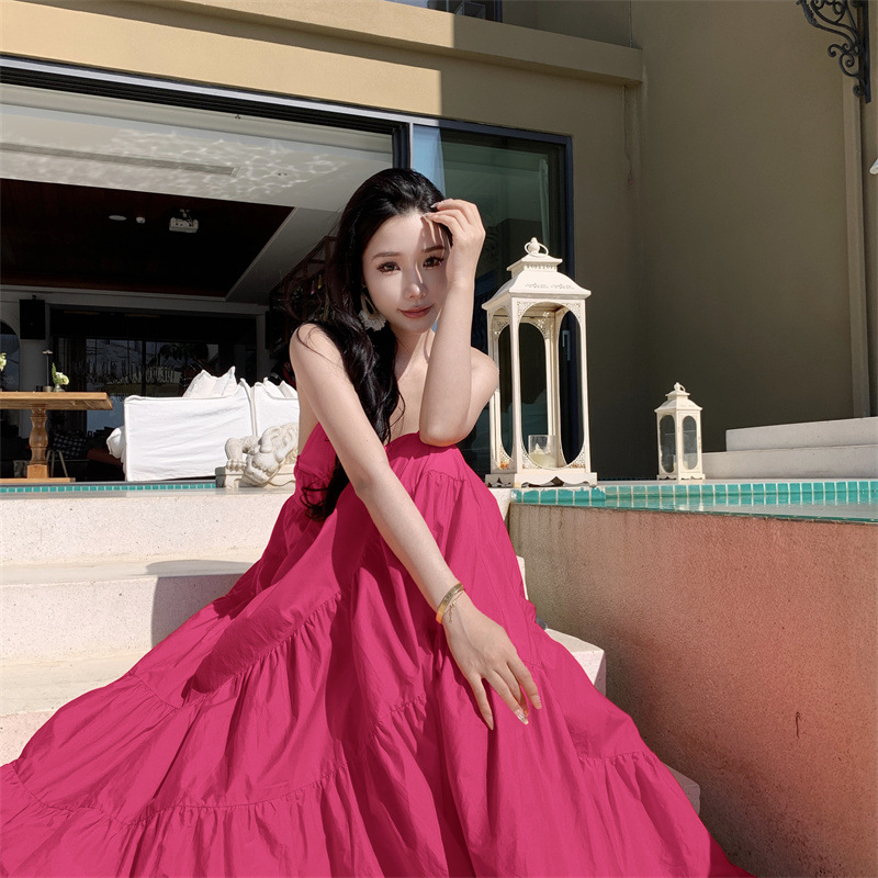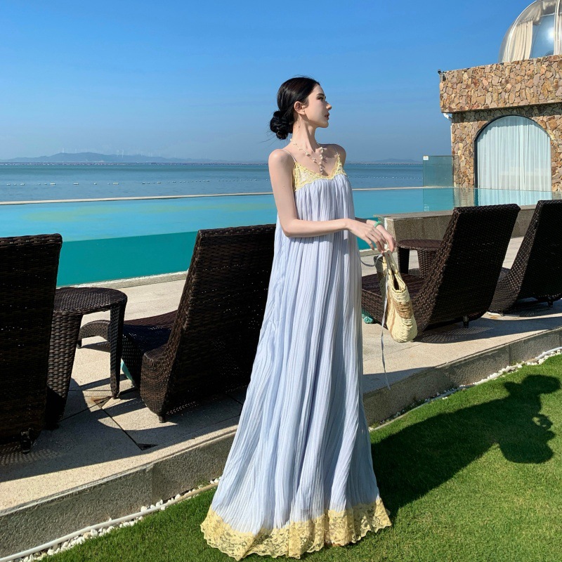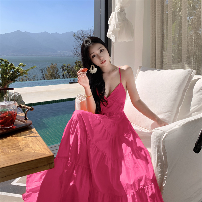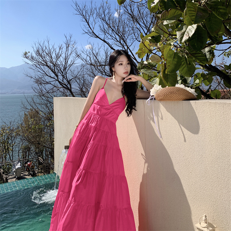 フランス式ドーパミン三亜ビーチスカート女性カラーストラップワンピース