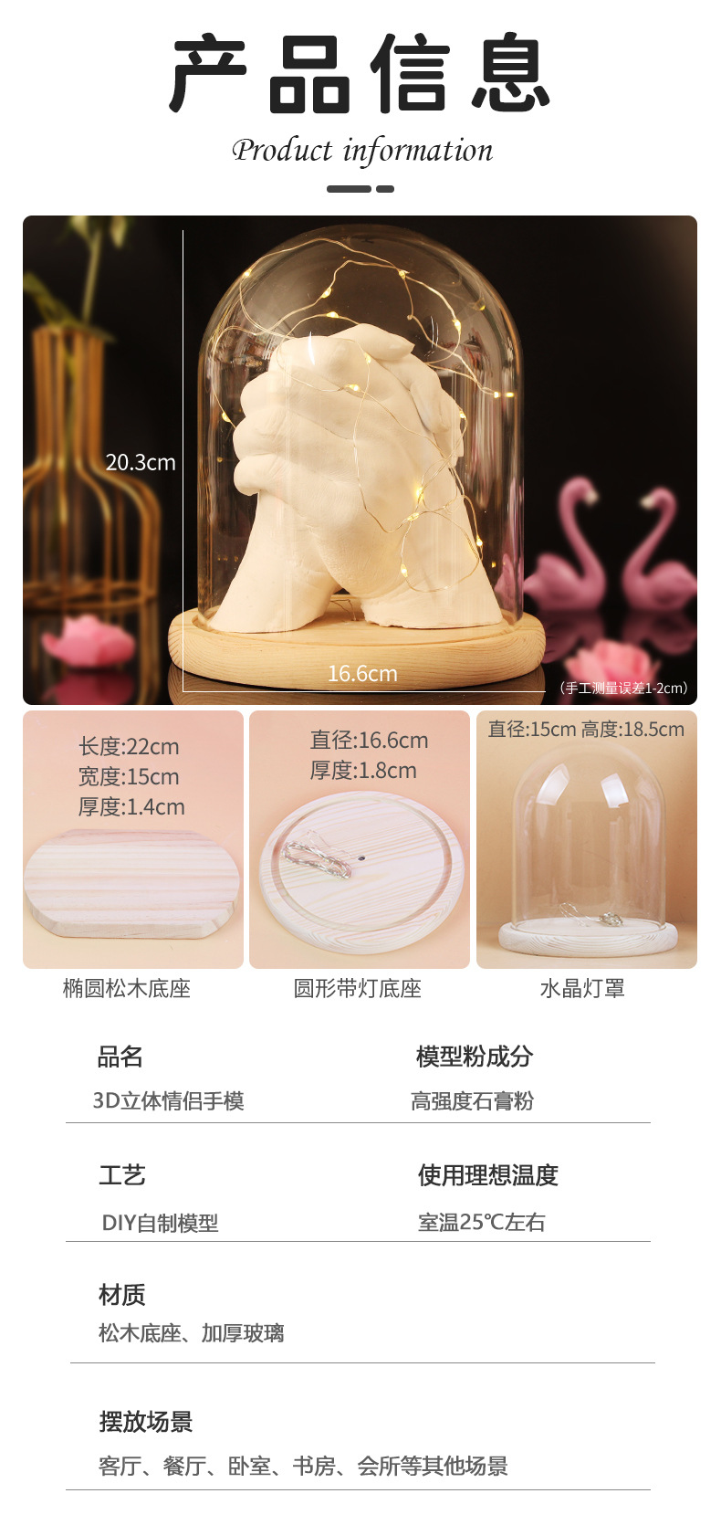 カップル手膜石膏製作材料金型自作手モデル3d立体diyクローン粉手形記念