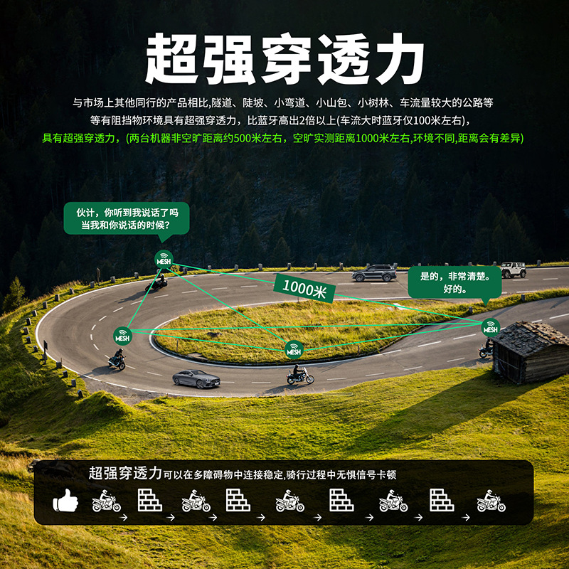 EJEAS オートバイヘルメットヘッドセットメッシュ 3.0 メッシュインターホン技術 1000 メートルインターホン距離サポート共通音