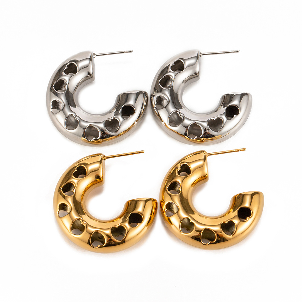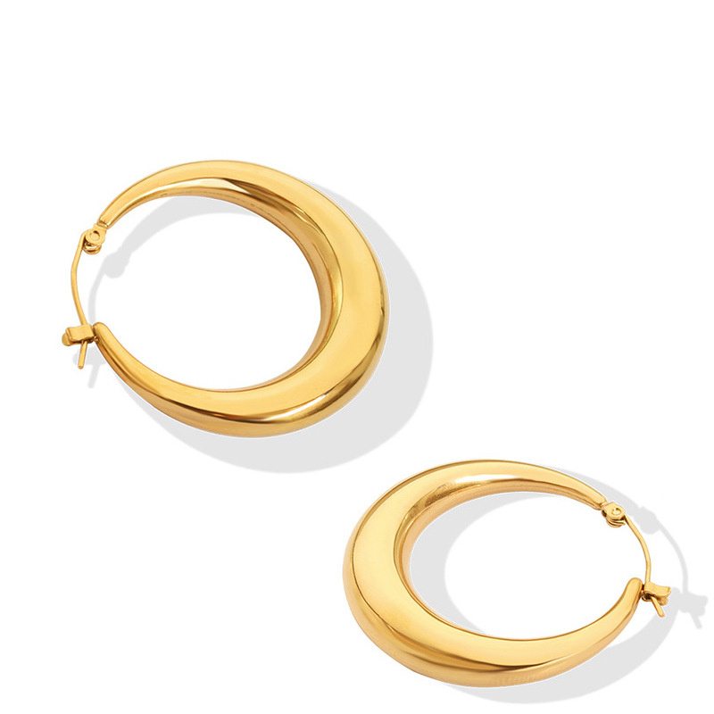 Ins風ステンレス中空楕円イヤリング軽豪華メッキ18k真金チタン鋼女性中空イヤリング卸売り