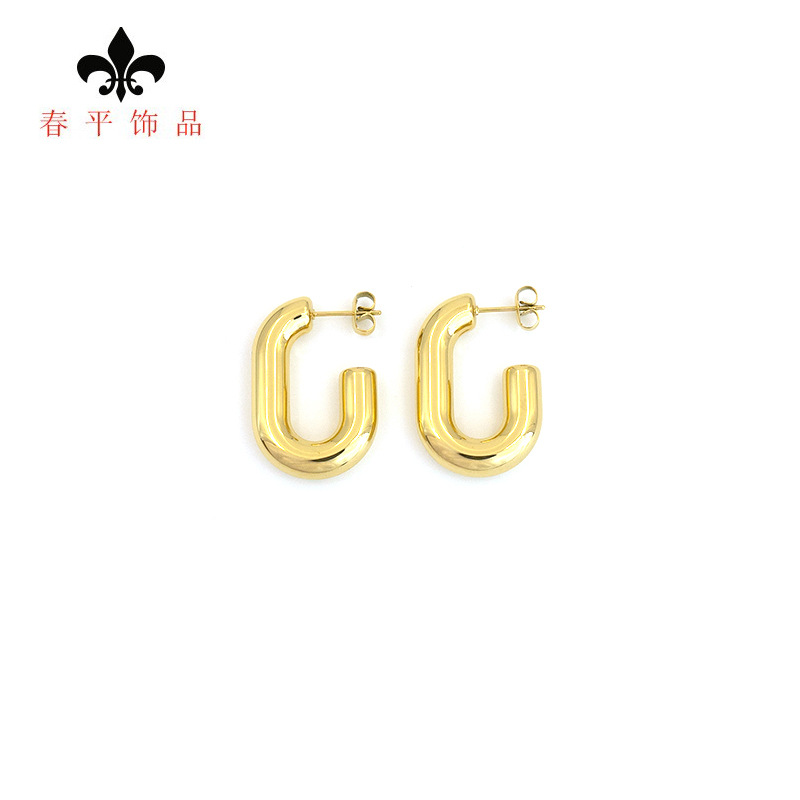 欧米の冷たい風のU形の大きいGの中空のイヤリングの女性の18kの金のステンレスの輪の形のピアスの気質のチタン鋼のイヤリングのアクセサリ