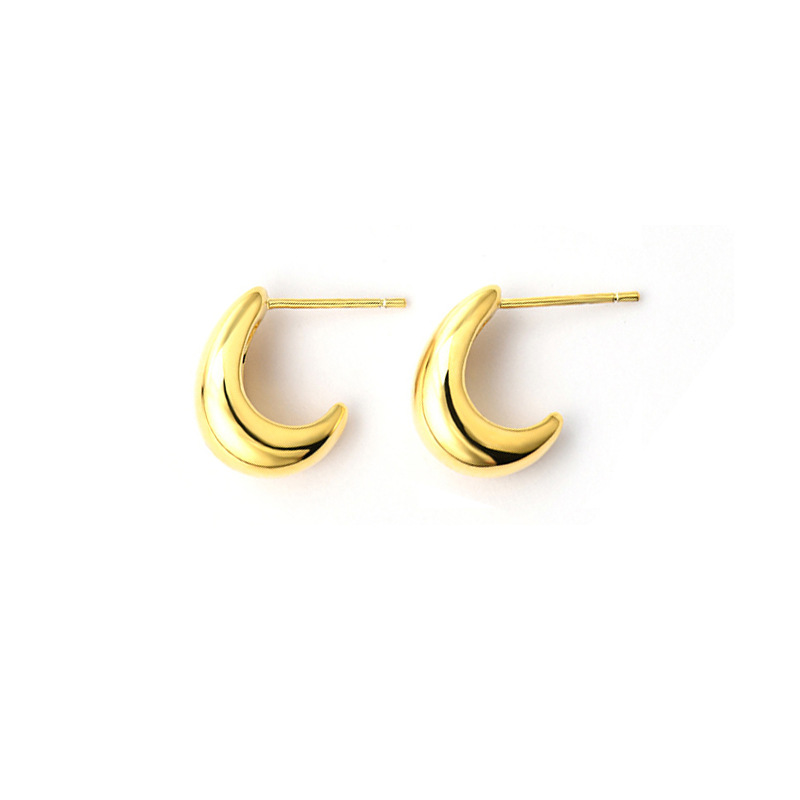 国境を越えた欧米ins中空イヤリング炉内真メッキ18kステンレス牛角光沢面不規則イヤリング卸売り