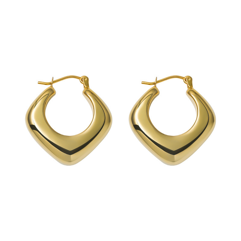 Insファッション女性のイヤリングの幾何学的な形18k金チタン鋼の光沢面の壺の形の透かし彫りの欧米風のイヤリングの装飾品