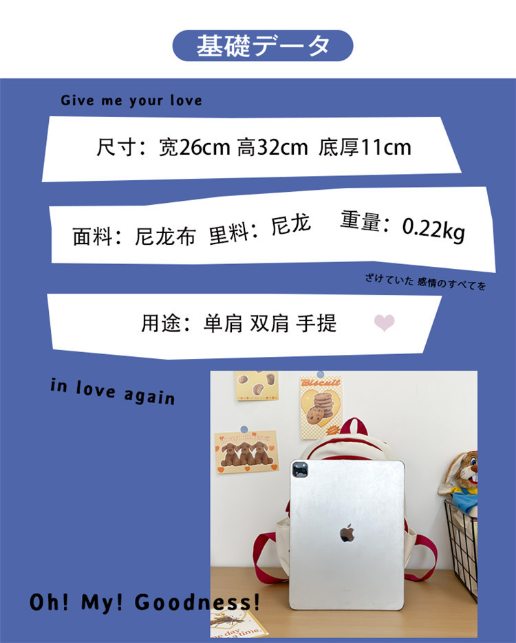 新款ins清新可爱百搭学生书包女大容量学生休闲背包双肩包萌妹