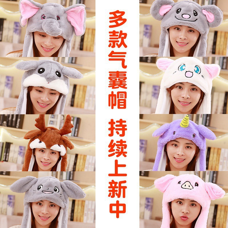 抖音同款捏一捏兔耳朵会动的帽子网红气囊帽多款道具毛绒可爱头套