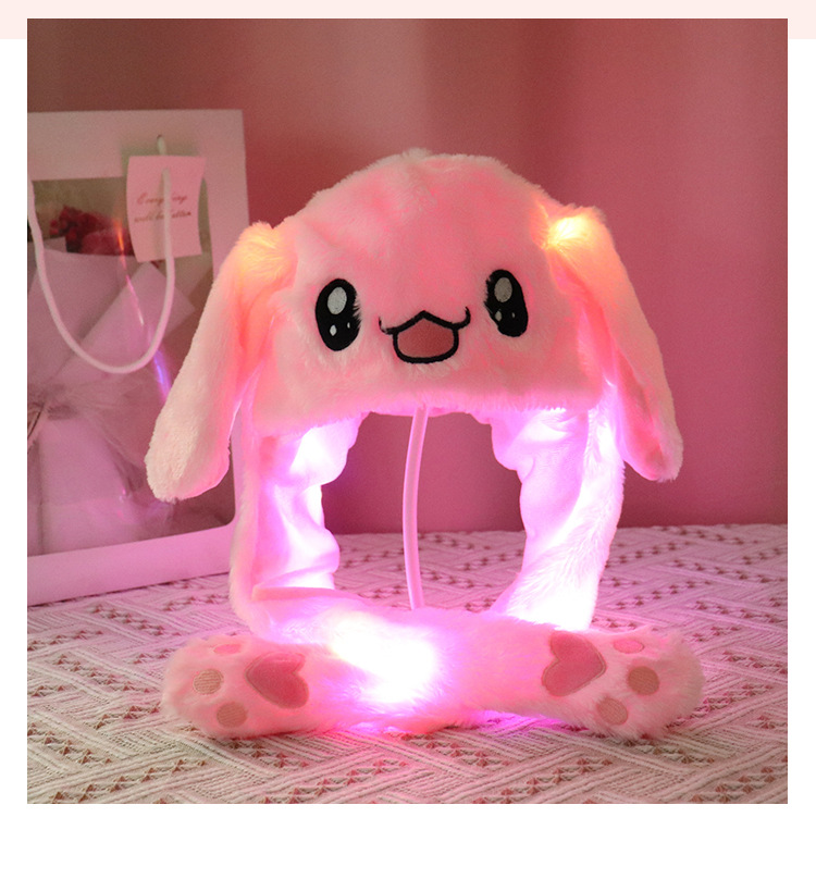 跨境发光帽子捏一捏耳朵会动的儿童帽子卡通亮灯礼品儿童冬帽圆顶