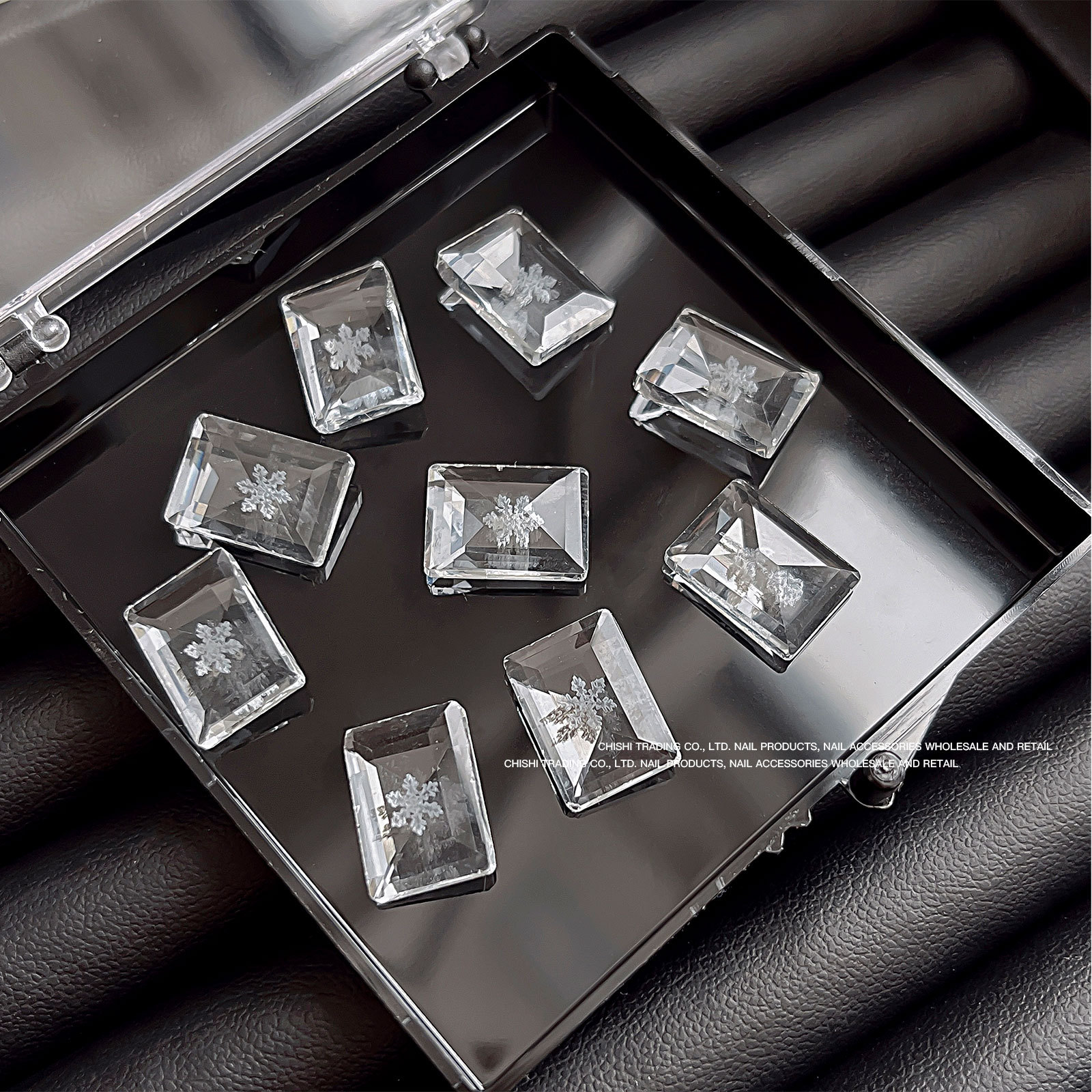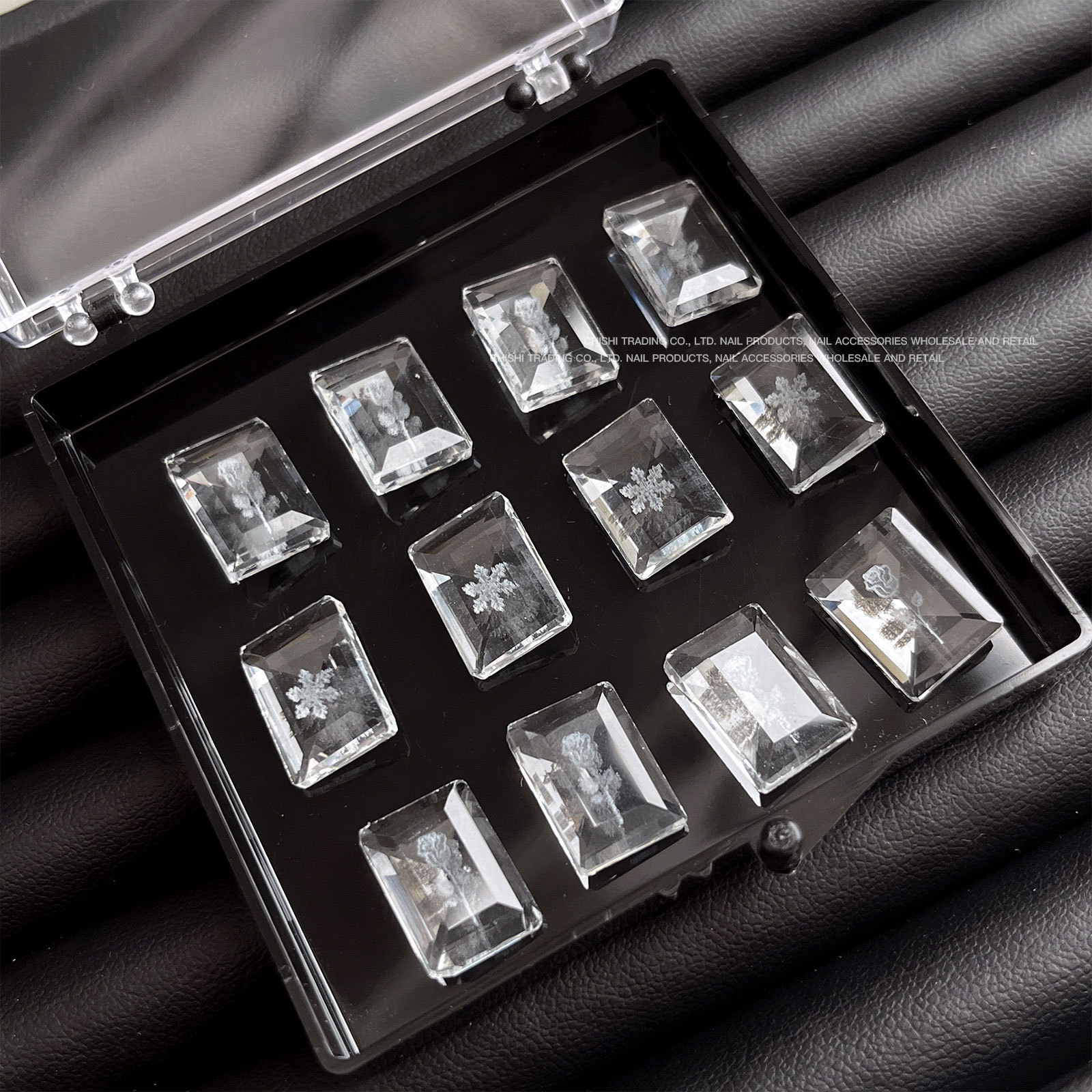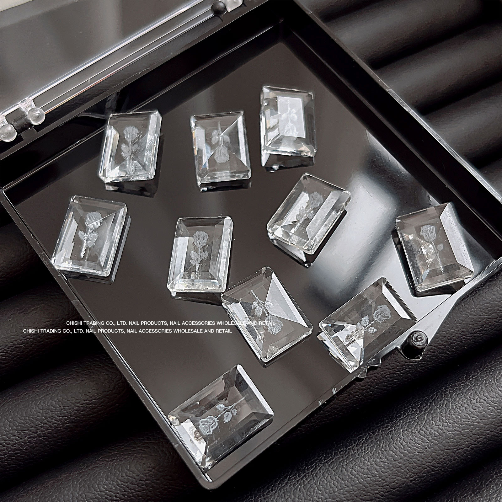 ネット赤水晶内彫刻雪花模様ネイルアクセサリー薔薇氷糖長方形直角爪装飾ドリル卸売り