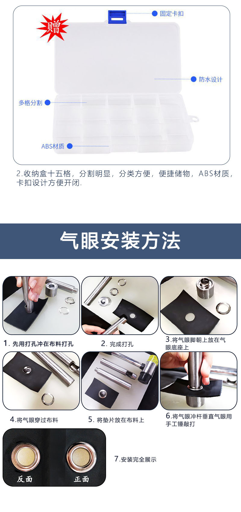 卸売りのカラーの目のボタンの箱のアパレルの装飾の目の輪は中空のリベットの烏眼の靴のボタンの目の目の目の目を掛けます。
