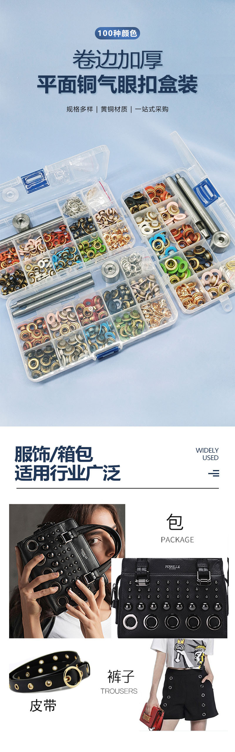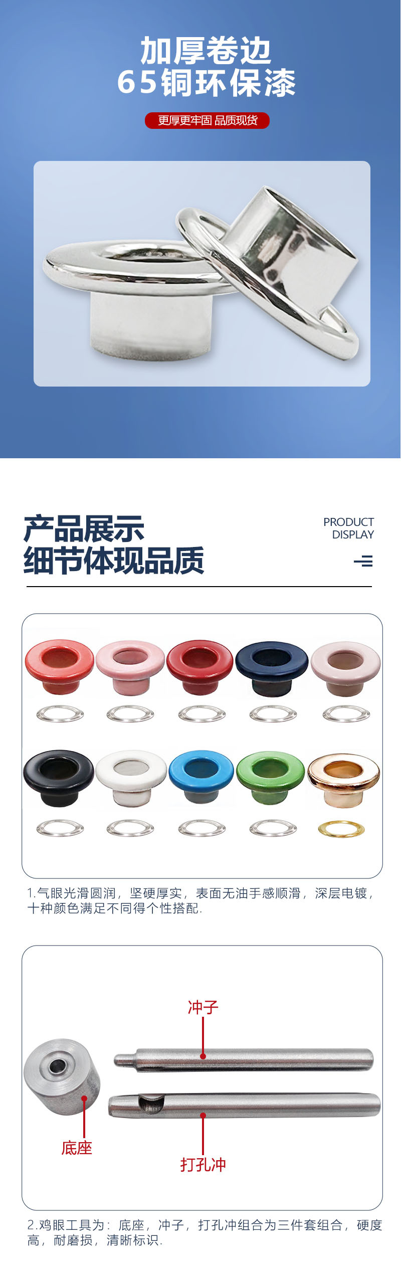 メーカー卸売り黄銅カラー鶏眼ボタン服飾靴バッグ厚手カール焼付塗装中空気目ボタンツールセット