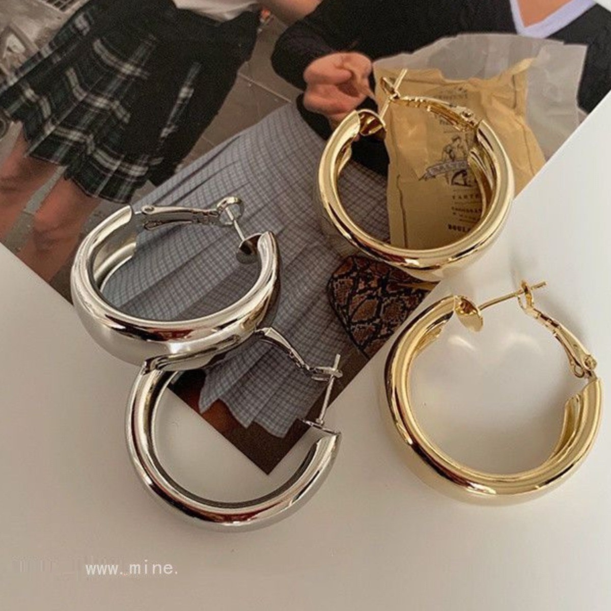 韓国の高級感のある円のイヤリングの金属の質感925銀の針のイヤリングの欧米風のピアスのイヤリングの潮のピアスの潮