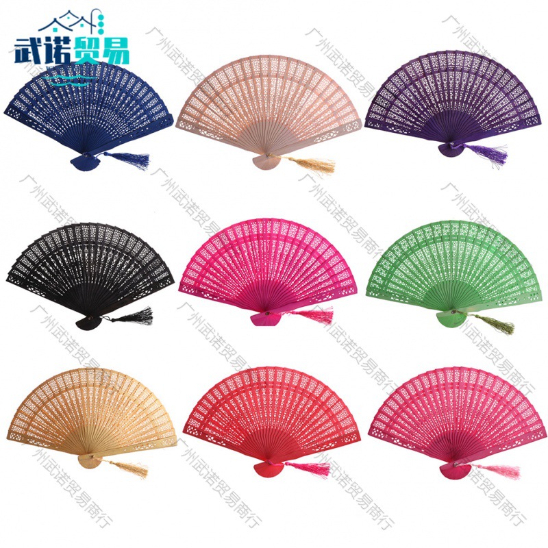 カラーの香木の扇子の卸売りの女性の扇子の袋のフリンジの透かし彫りの扇子の木製の扇子