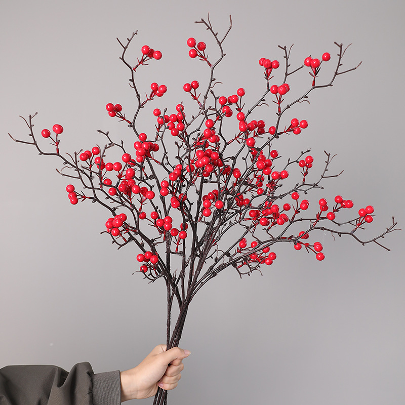 黄金系尤加利銀杏造花材料結婚祝い福桶生け花紅果冬青紅果シミュレーション花発財果