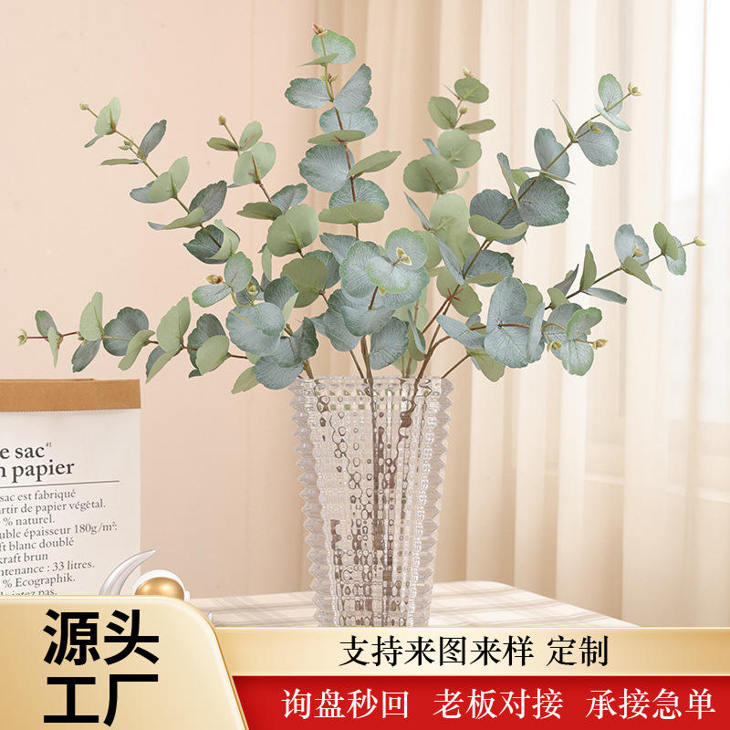 シミュレーション植物尤加利家庭生け花緑植花芸装飾手抱花単枝3叉毛糊金銭葉