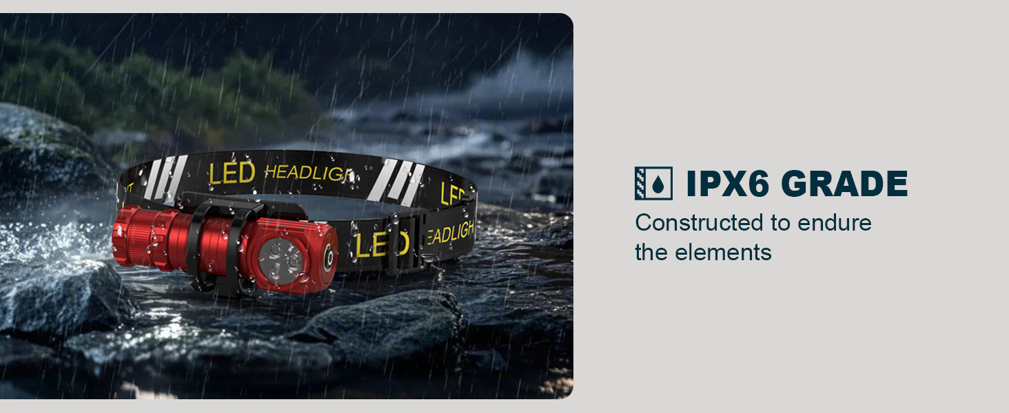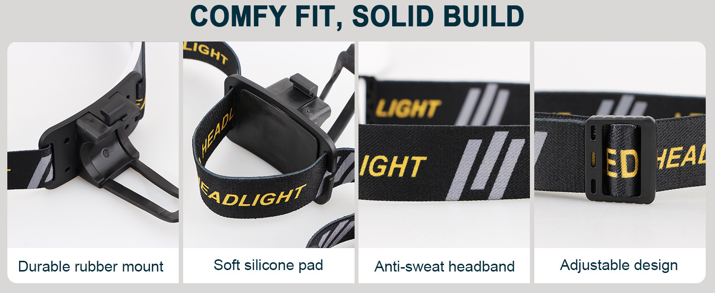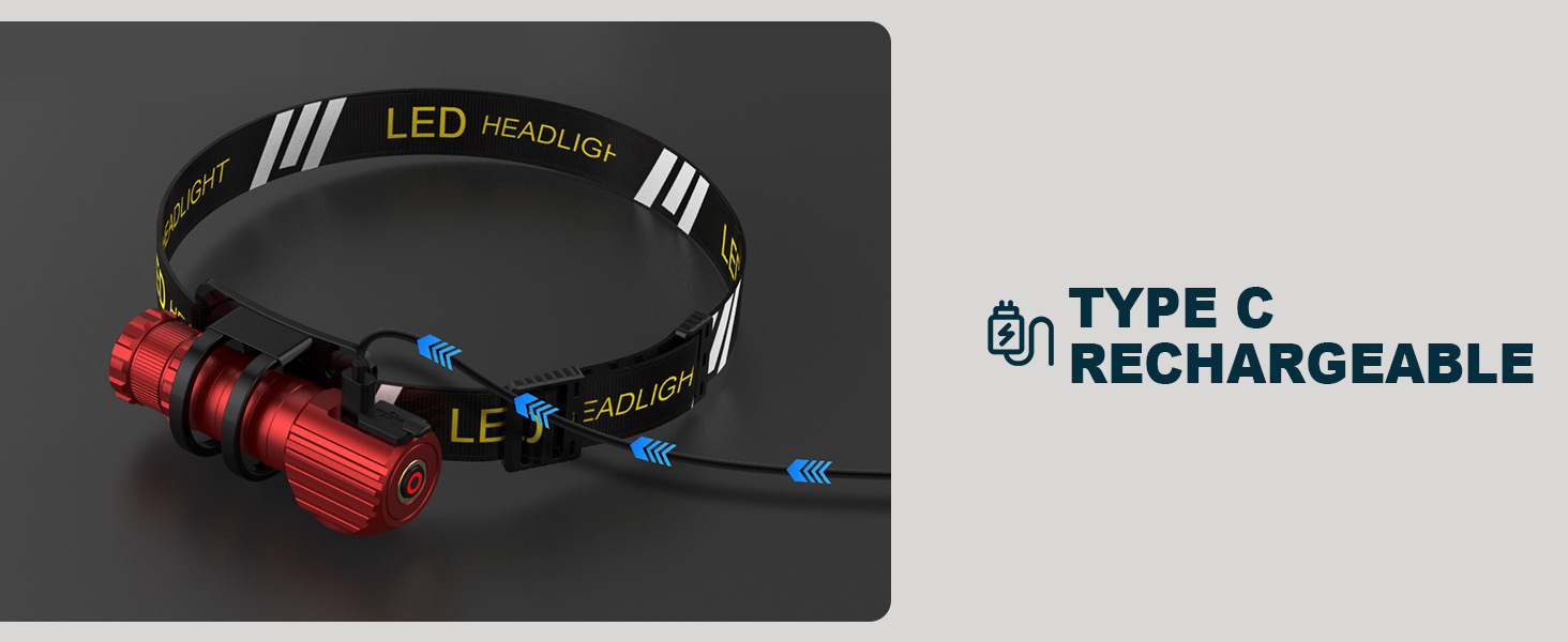 跨境新款LED头灯Type-C充电 户外骑行跑步可拆卸红光警示强光头灯