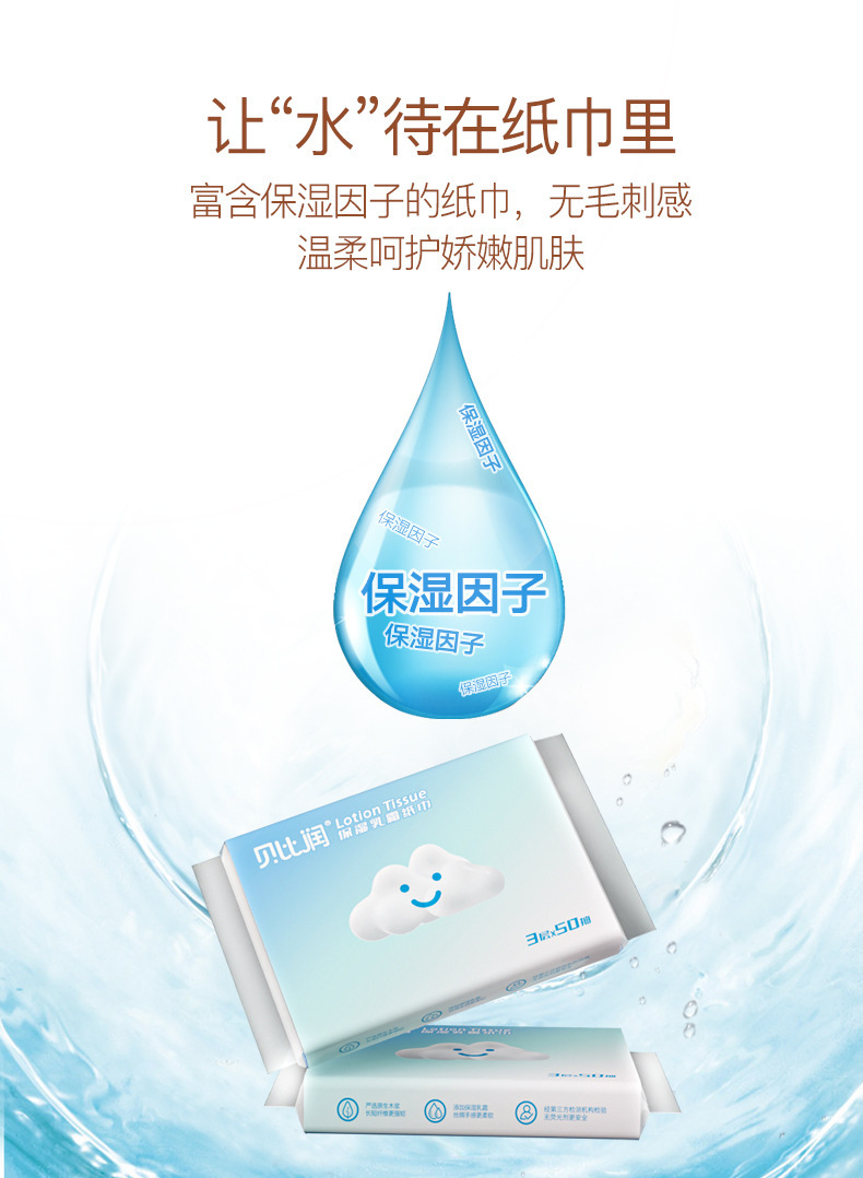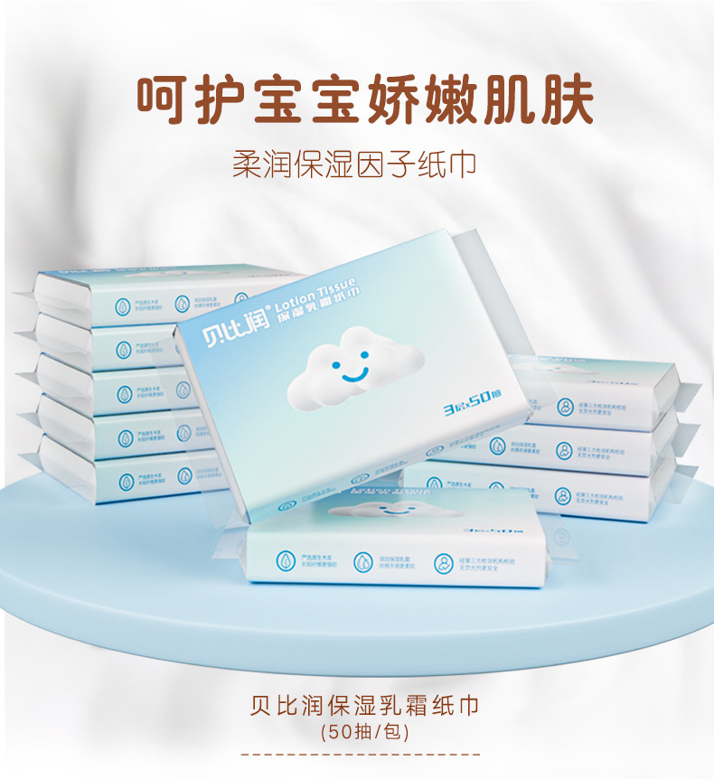 5パックのベビーティッシュ保湿クリーム紙は柔らかくて肌をケアします。