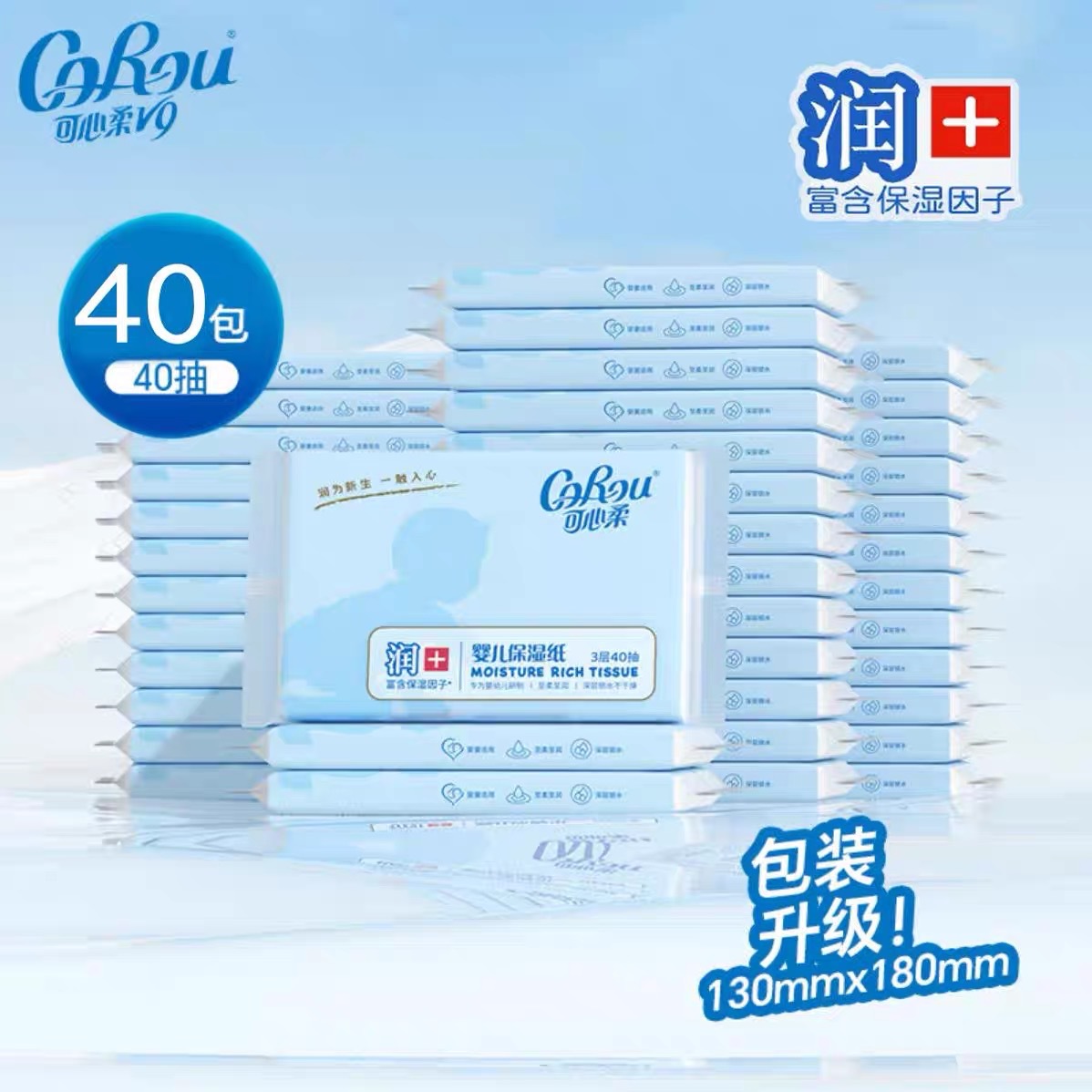 可心柔40抽婴儿超柔保湿纸面巾纸40包整箱宝宝棉柔云柔巾乳霜抽纸