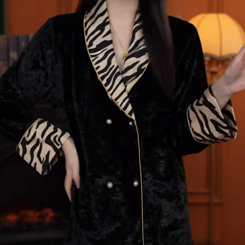 【玫瑰】睡衣女秋冬新款海岛绒长袖长裤加厚加绒小香风家居服套装
