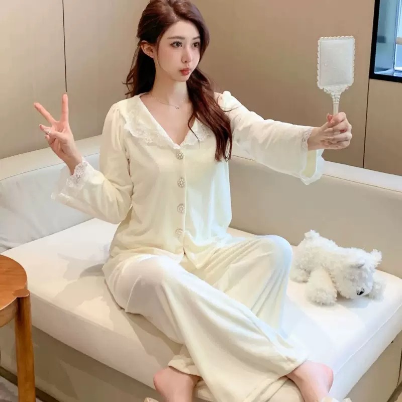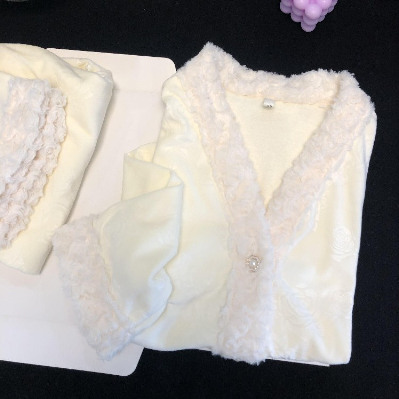 【恋初】カシミヤパジャマ秋冬新作高級甘美少女フランス式軽豪華風ホームウェアセット