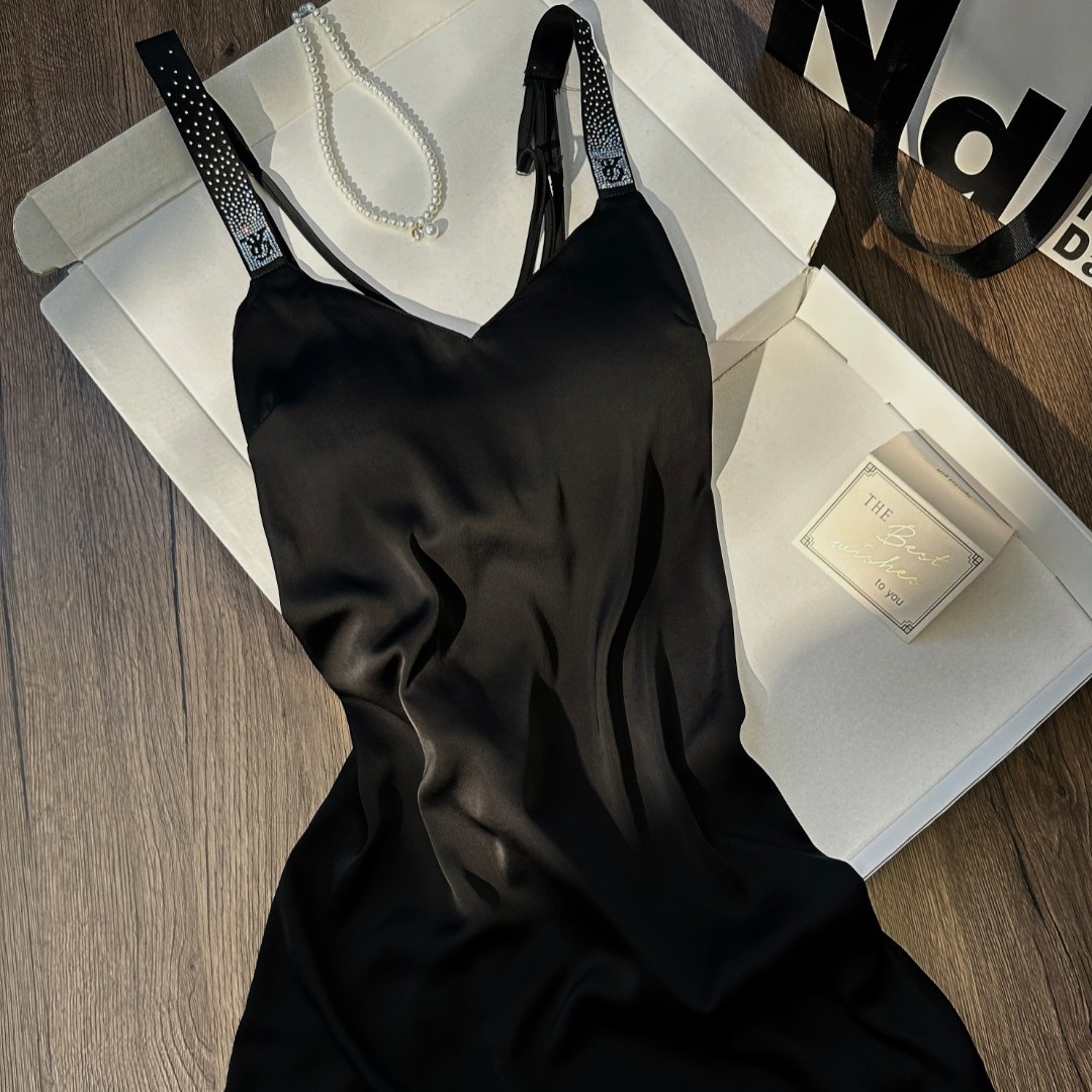 [Lacquer Star] セクシーなナイトガウン女性のための 2025 夏の新しいアイスシルク V ネック純粋な欲望スタイルサスペンダーハイエンドホームウェア