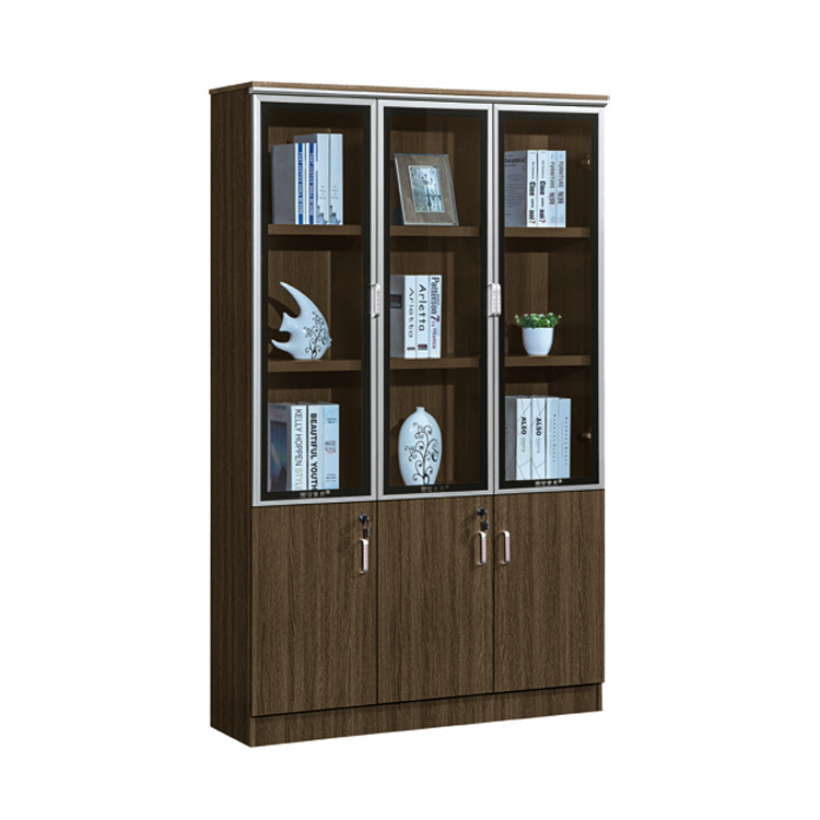 オフィスファイルキャビネット木製書類棚ロック付きガラスアルミフレーム本棚収納ロッカー