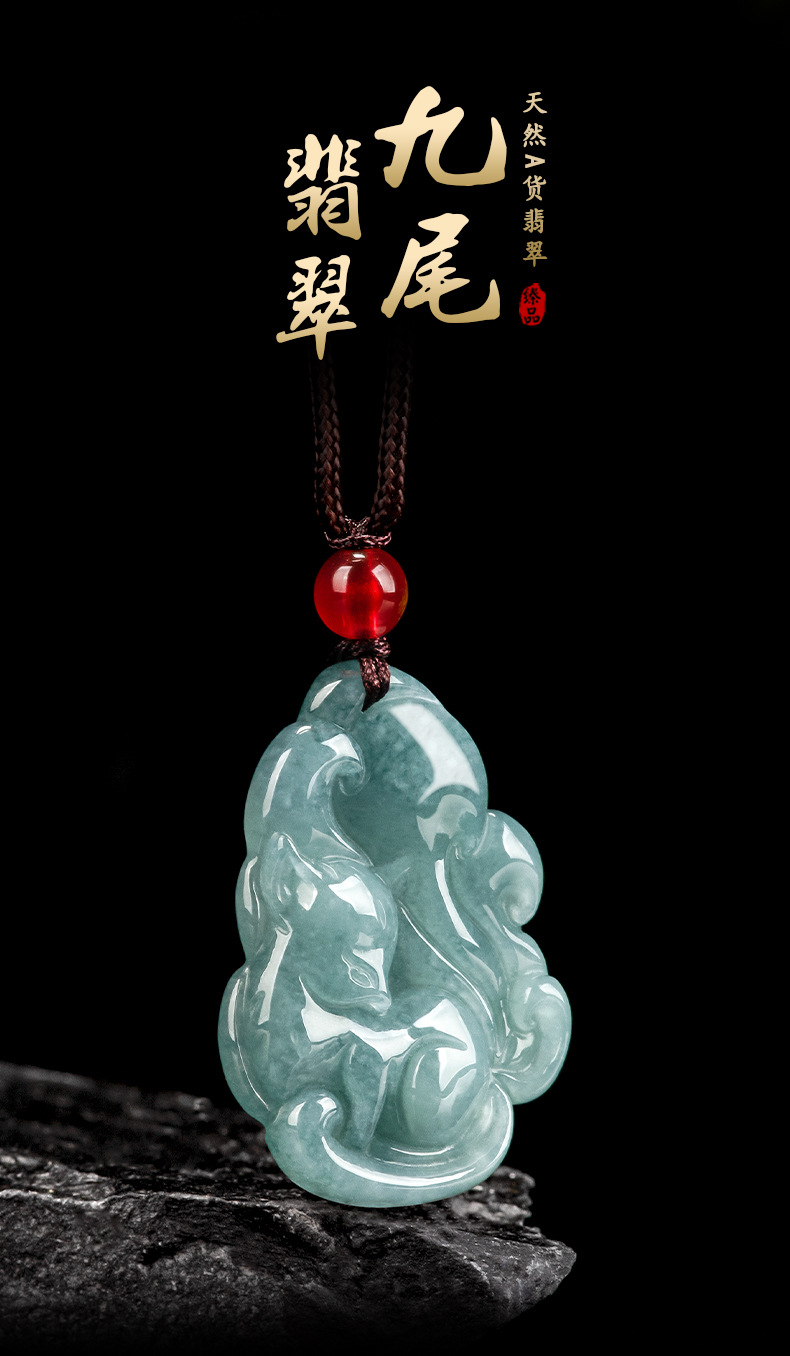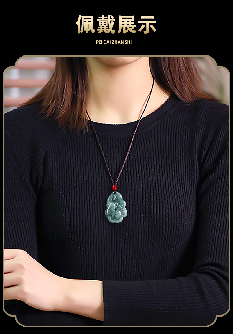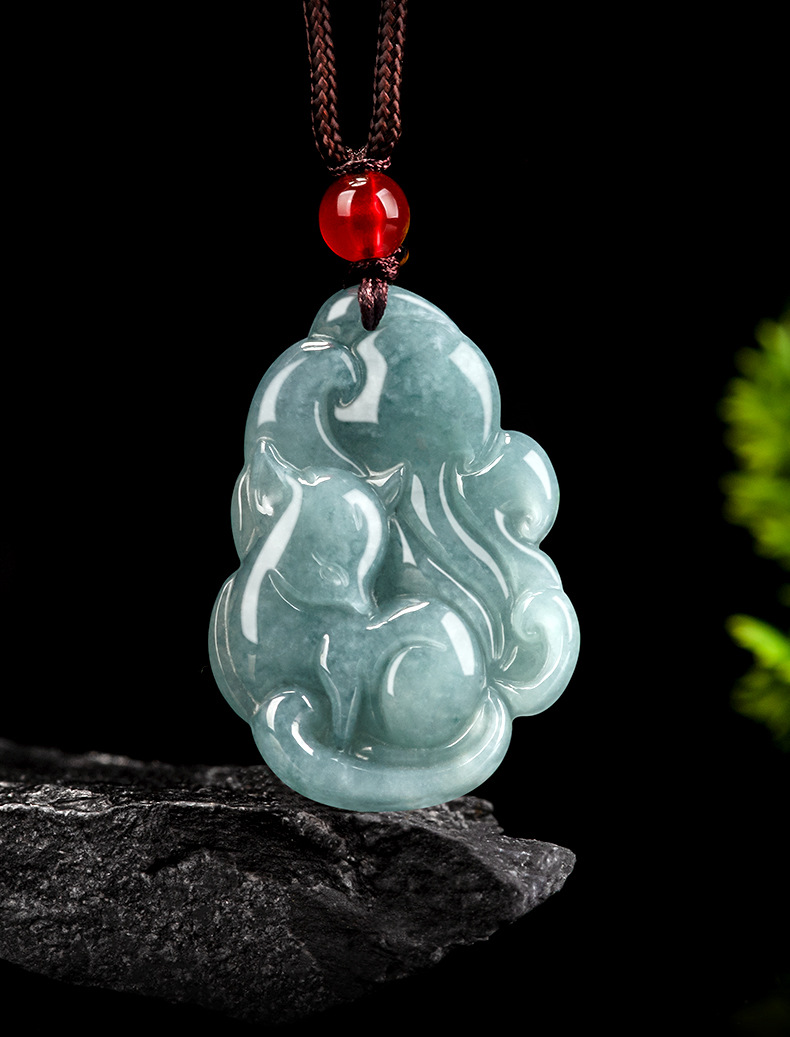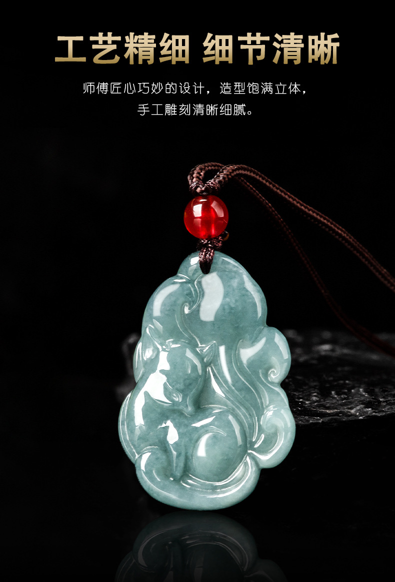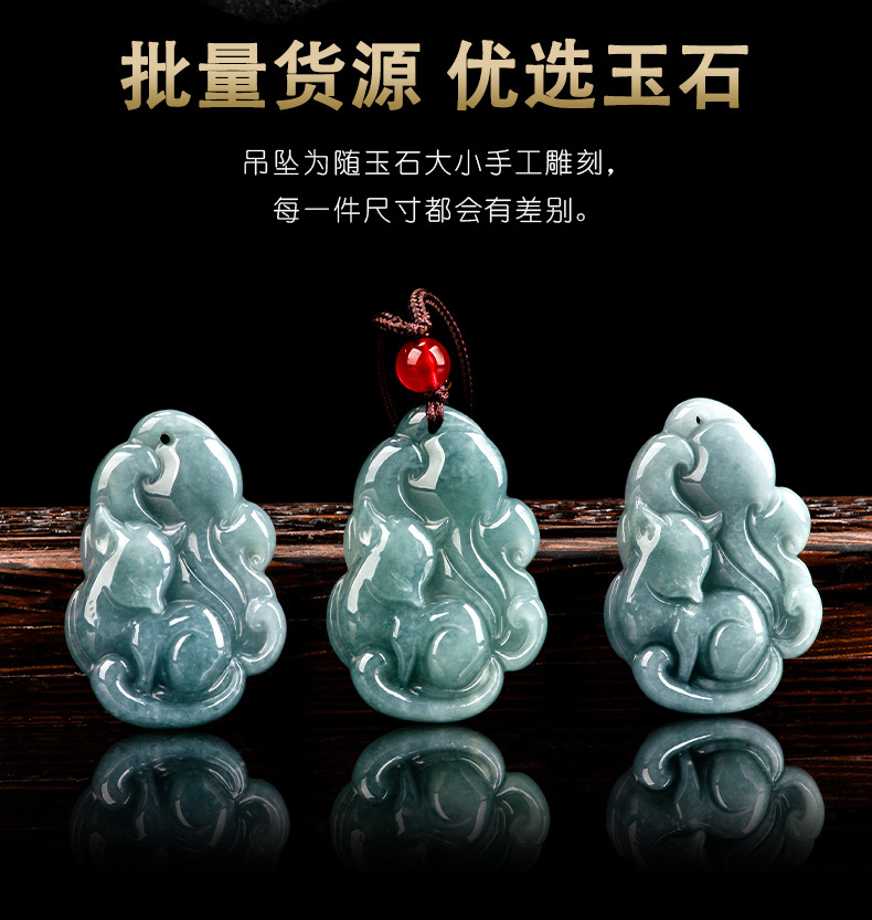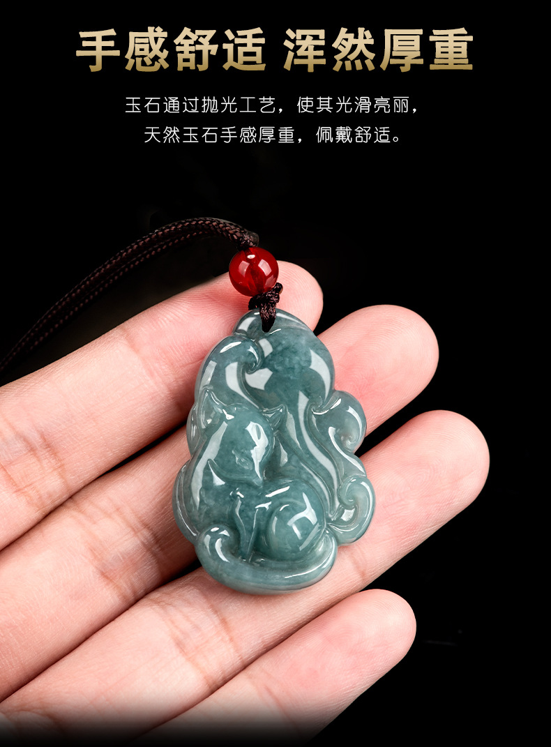 天然ミャンマーA品翡翠九尾狐ペンダント狐モチモチ種玉ペンダント花男女金四会玉器