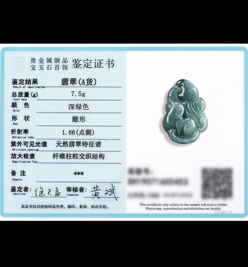 翡翠青水九尾狐(証明書・ストラップ付き) DW44