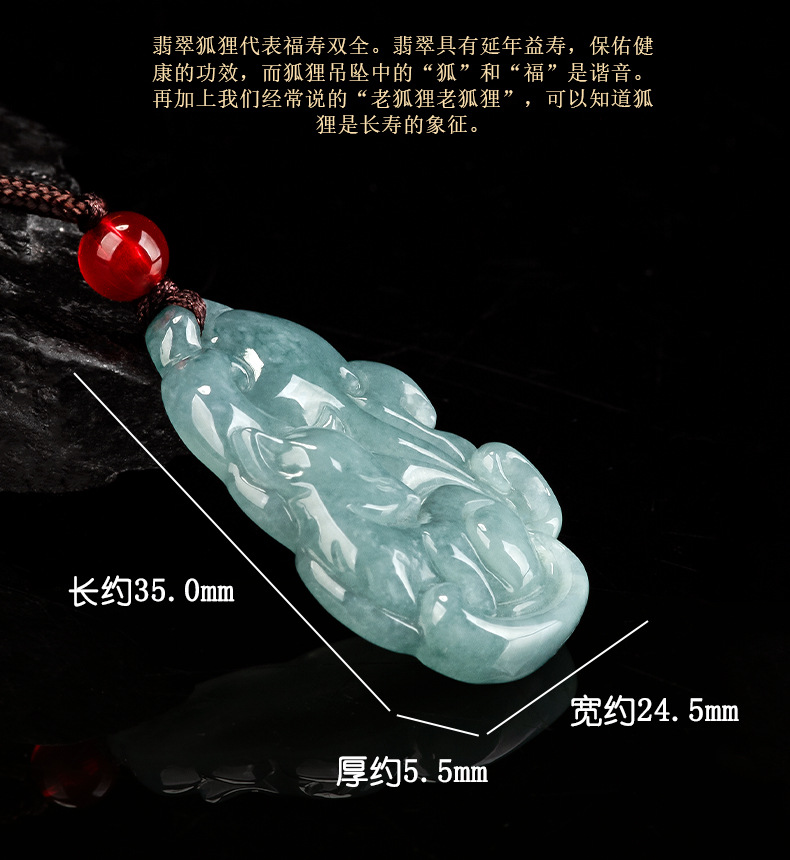 正品天然a货翡翠狐仙九尾狐吊坠豆种玉石玉佩男士挂件女款批发