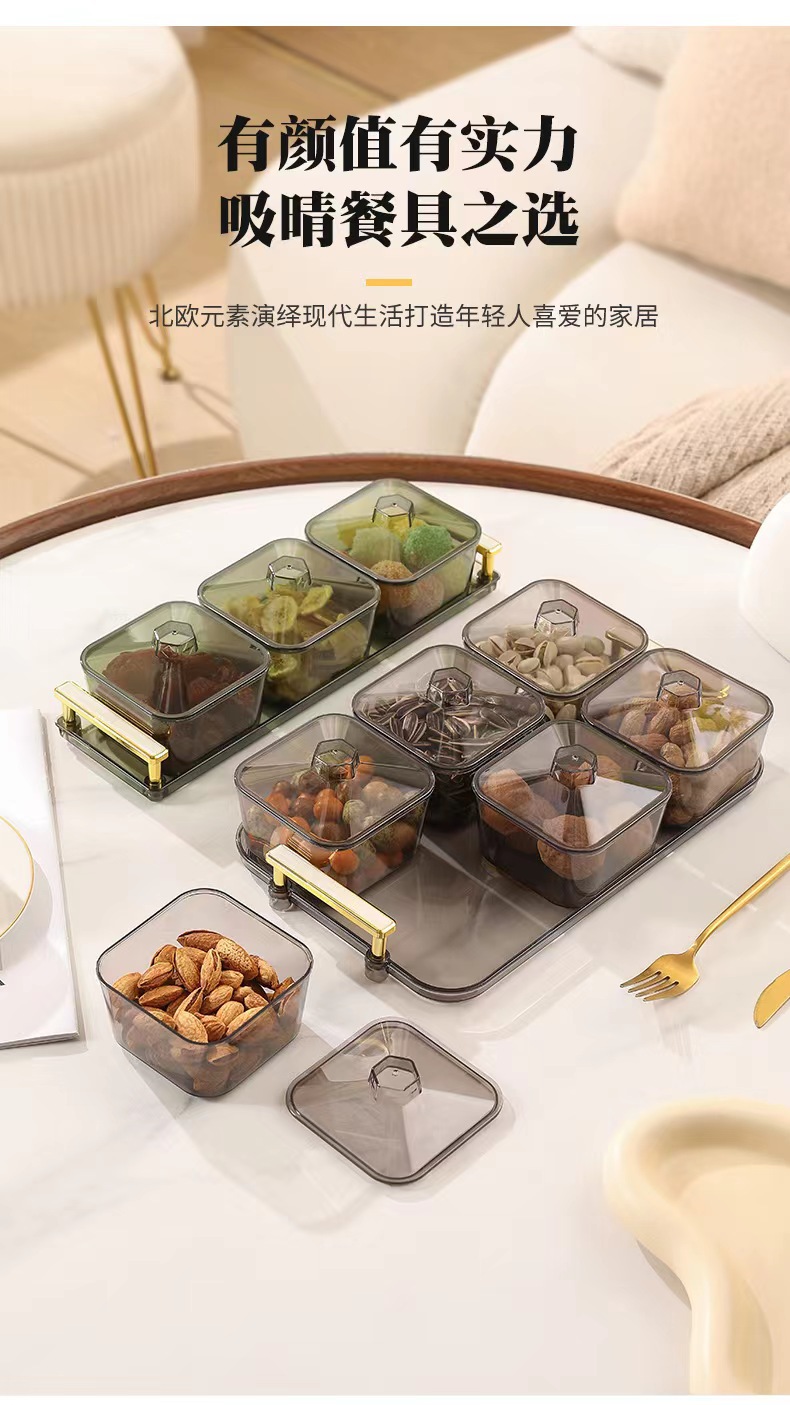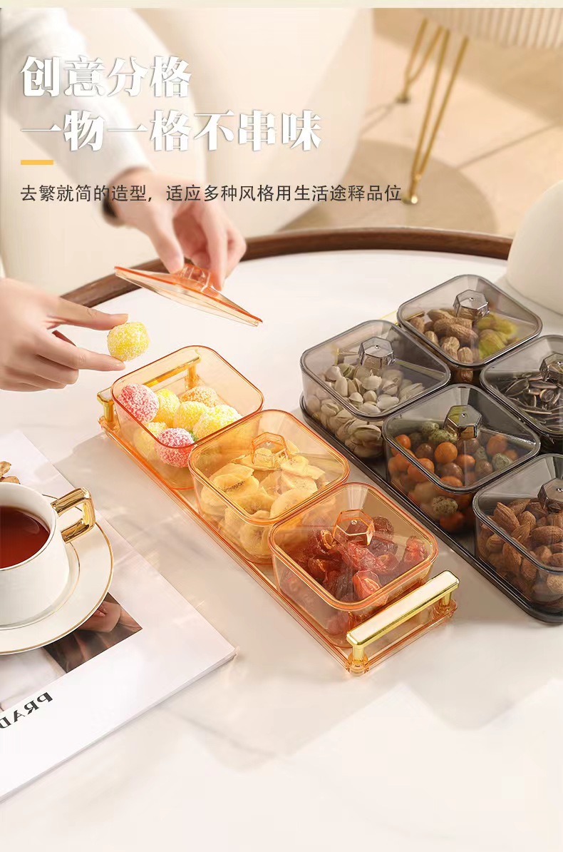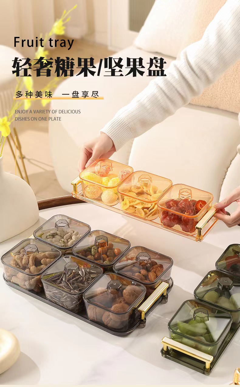 軽くて豪華な透明な果物の皿の客間の家庭用の創意の分格のキャンディーの箱の軽食の皿のお菓子は果物の盛り合わせを並べます。