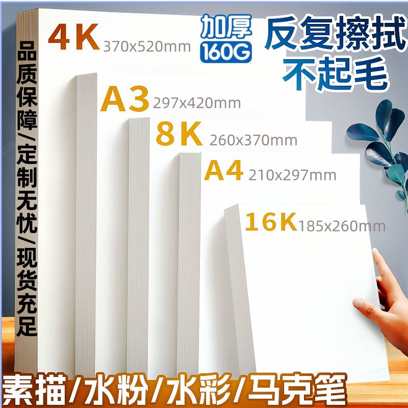 8k素描纸a4临摹美术生加厚白卡纸a3小学生书法纸幼儿园画画水彩纸