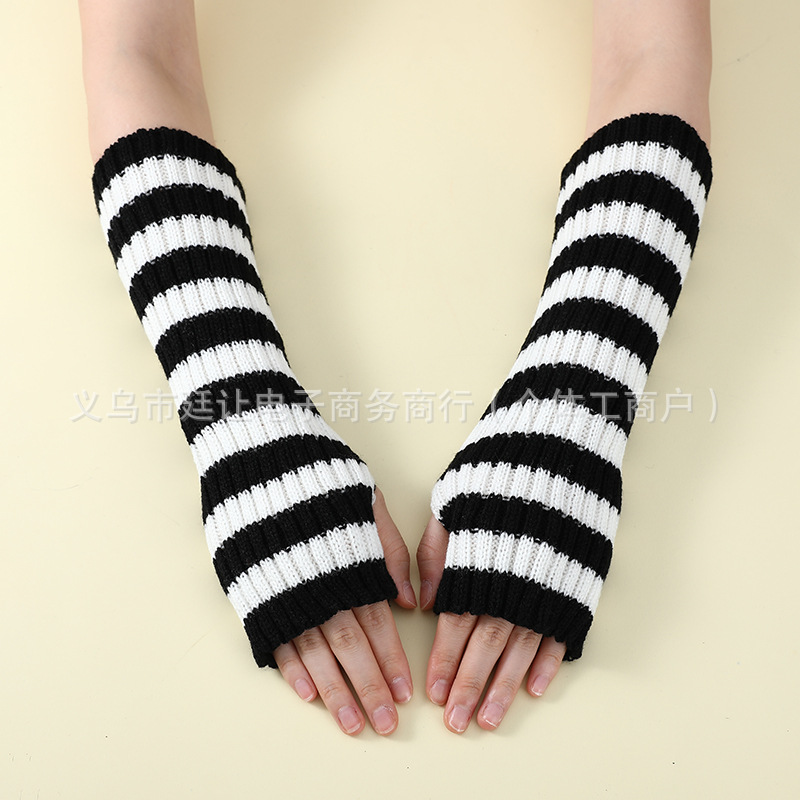 パンクダーク原宿ストライプ露指袖スリーブjk手袖y 2kギャル千年亜文化電競少女手袋