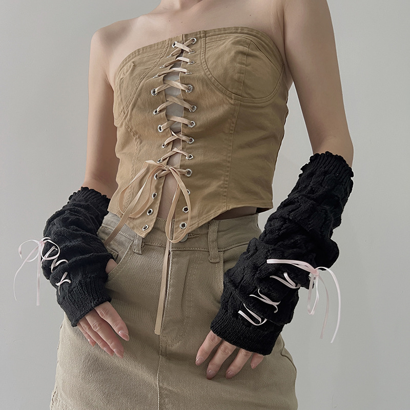 JK少女日系蝶結び腕袖千年ギャルメリヤス袖カバー純欲風漏指手袋袖