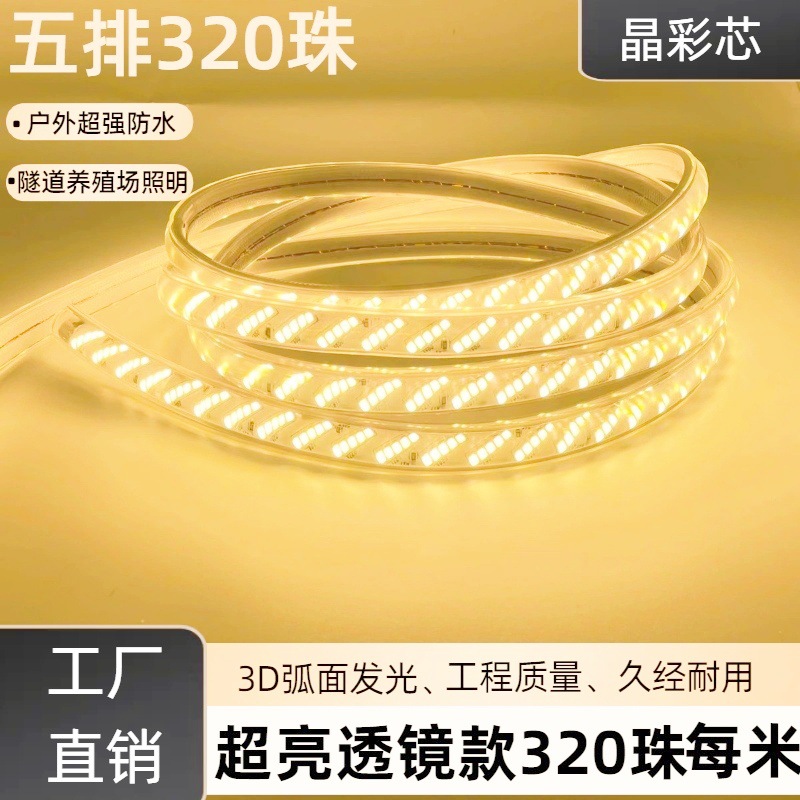 高圧 LED ライトストリップ斜め 5 列 320 ビーズ超高輝度レンズ防水エンジニアリング屋外屋内照明防水ライトストリップ