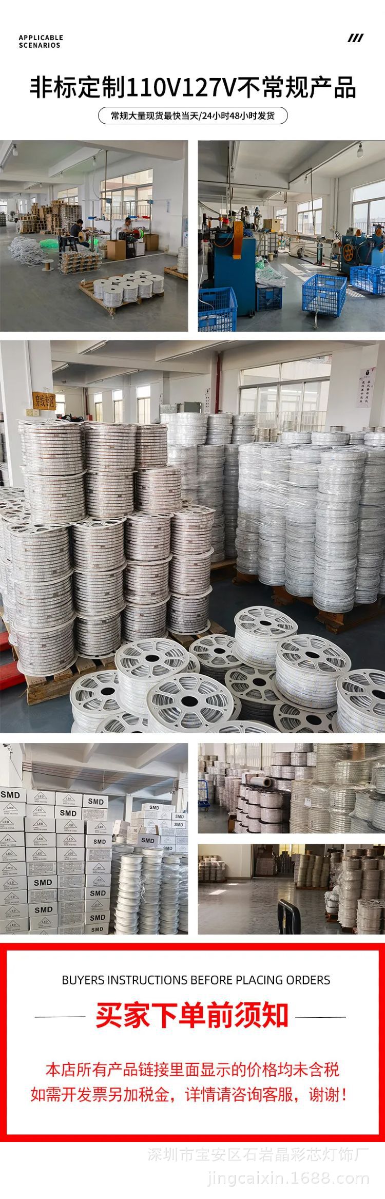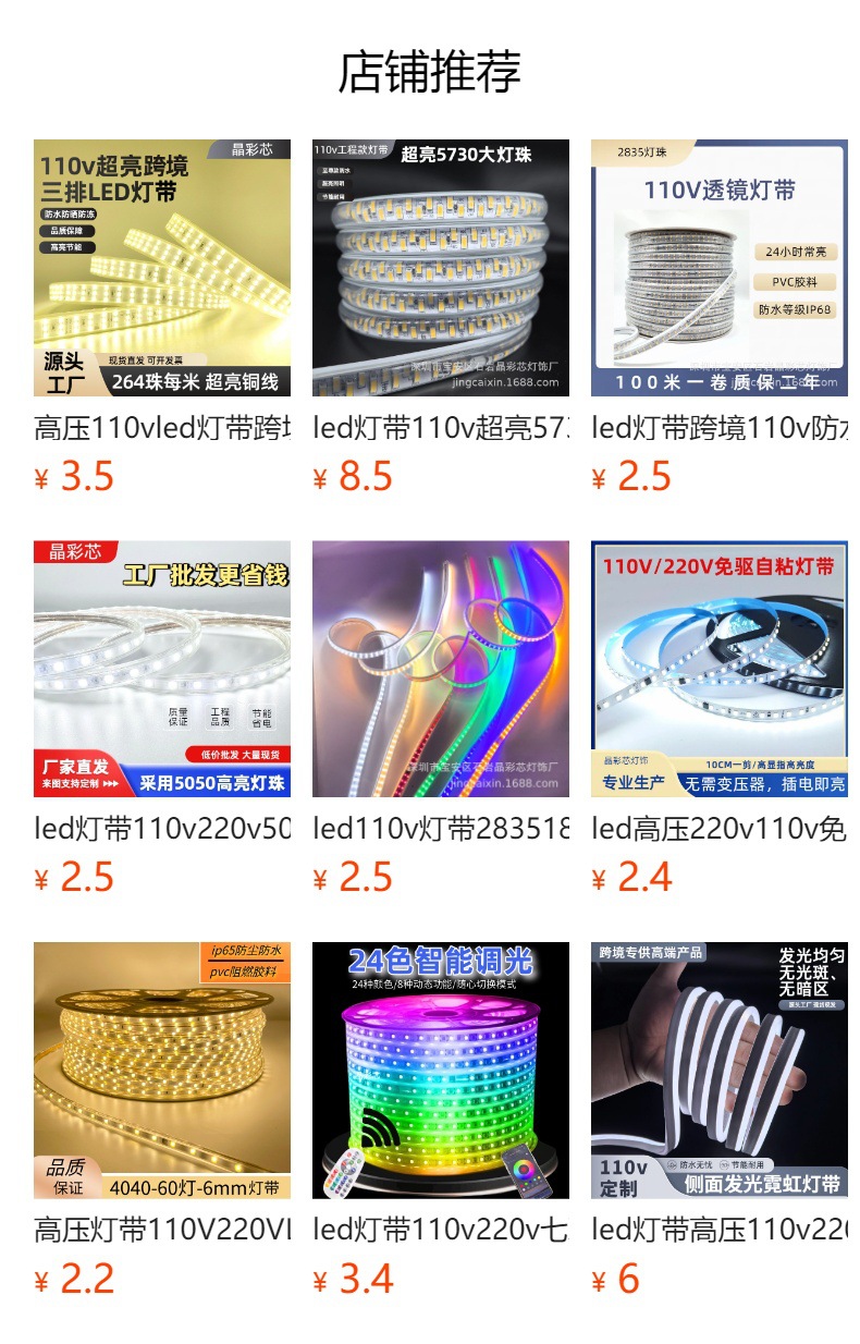 110v高压户外防水2835三排超亮led灯带隧道工地照明灯条