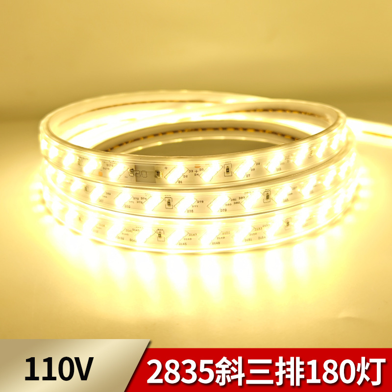 LEDライトストリップ 110V 2835 斜め3列180灯 銅線 高輝度 家庭用屋外照明 ソフトライトストリップ