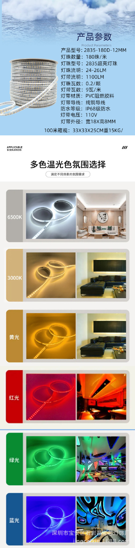 LEDライトストリップ 110v220v セブンカラーRGB5050 フレキシブルカラー屋外防水雰囲気照明エンジニアリングライトストリップ