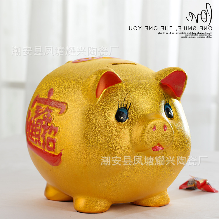 大中トランペット土豪金豪花豚陶磁器貯金箱貯金箱新店開店開業家庭プレゼント置物