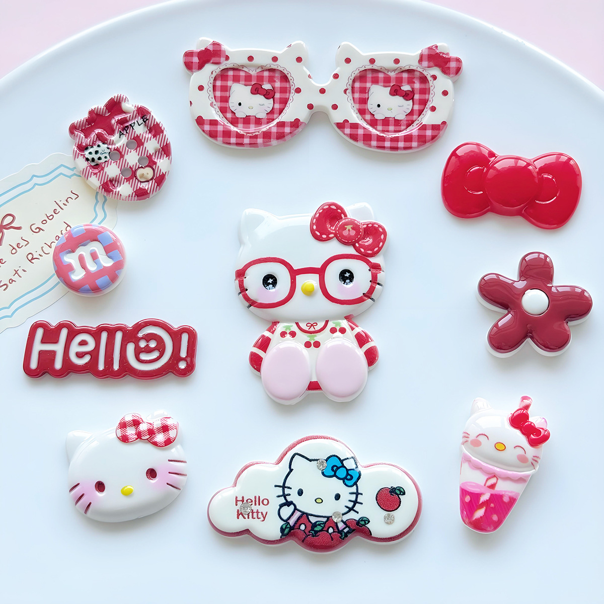 光沢のある可愛いKT猫樹脂DIY装飾品アクセサリー、スマホケース、穴あき靴のデコレーション、DIYヘアピン、ヘアアクセサリー素材