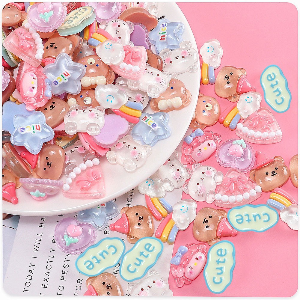 漫画風クマDIY樹脂製アクセサリー、スマホケース用パッチ、クロックス用飾り、靴の花、手作りヘアアクセサリー材料
