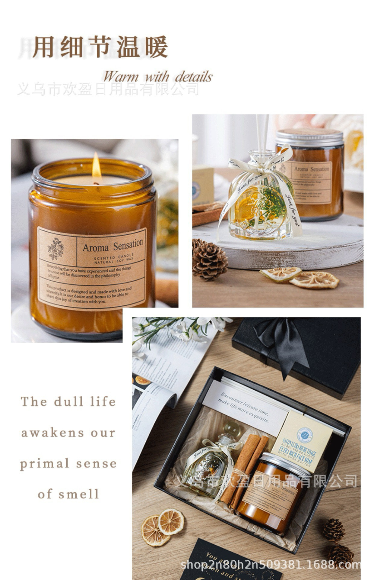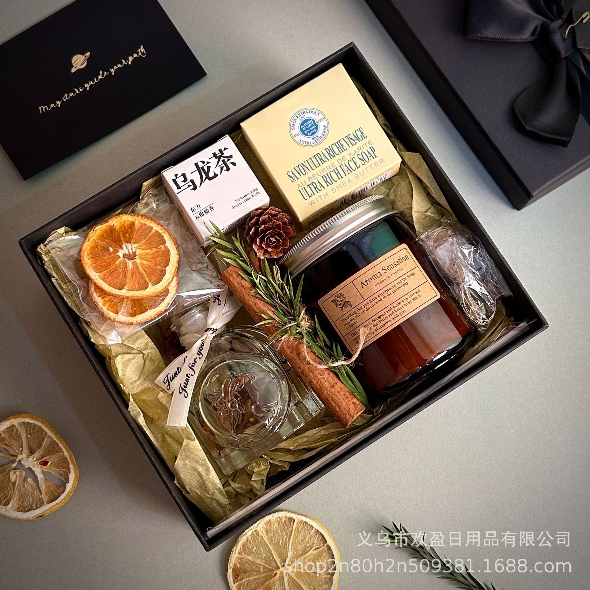 礼物清单:香薰蜡烛*1、无火香薰*1、桂皮卷*1、橙片*1、灯串*1、藏诗小蜡烛*1、香皂*1、挥发棒*1、贺卡*1、手提礼袋*1