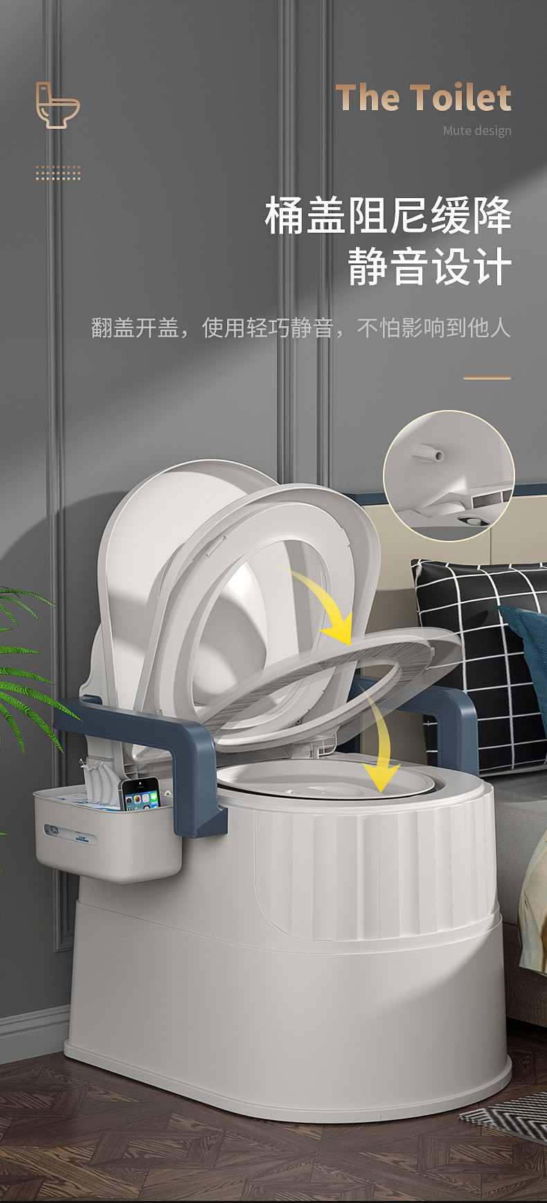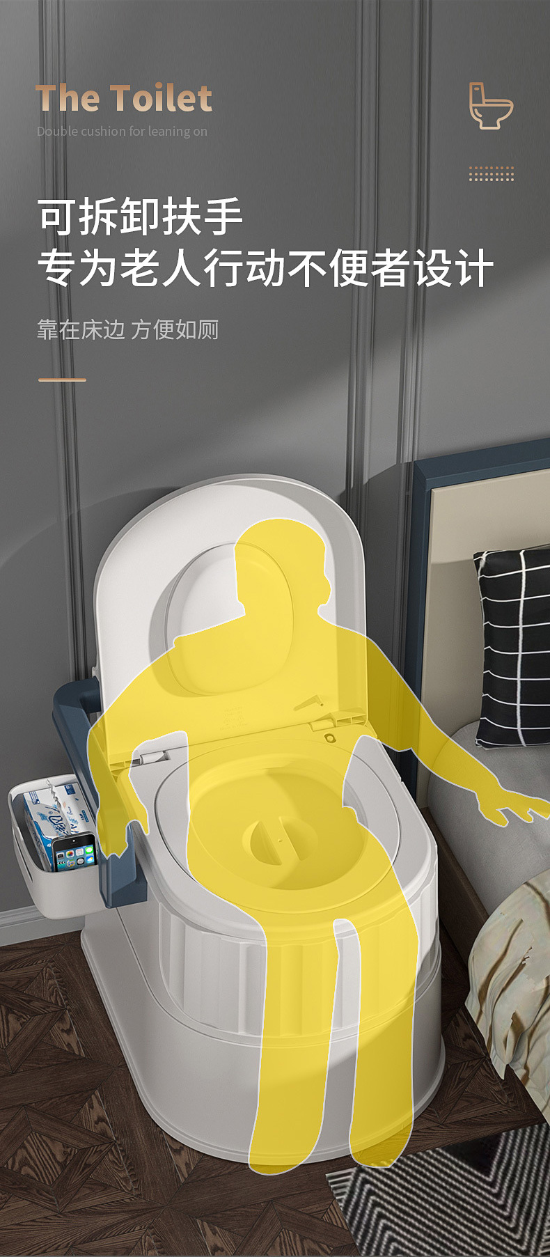 老人移動便器妊婦室内防臭便器家庭用ベッドサイド腰掛け便器成人シミュレーション