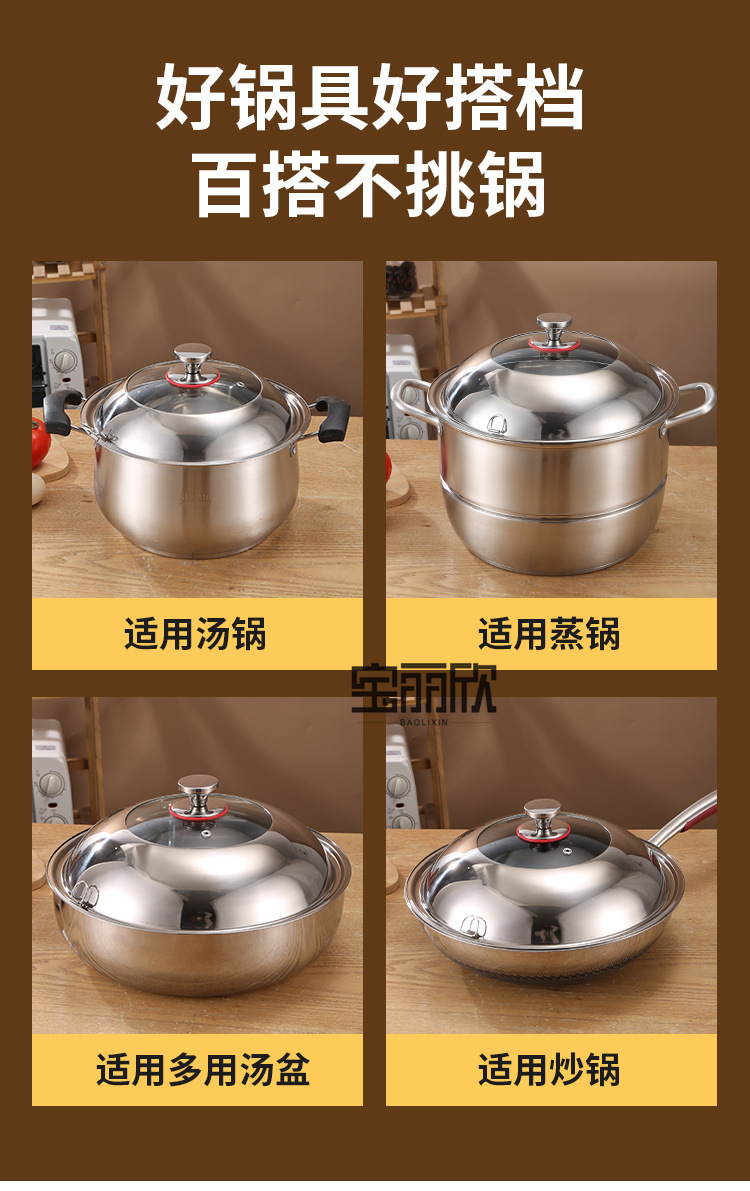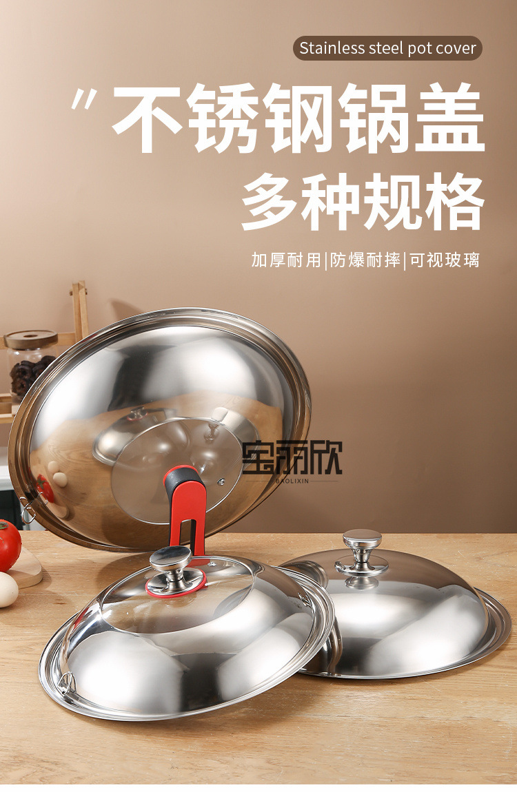業務用ステンレス鍋蓋、中華鍋蓋、万能鍋蓋、家庭用視覚強化ガラス鍋蓋、耐高温
