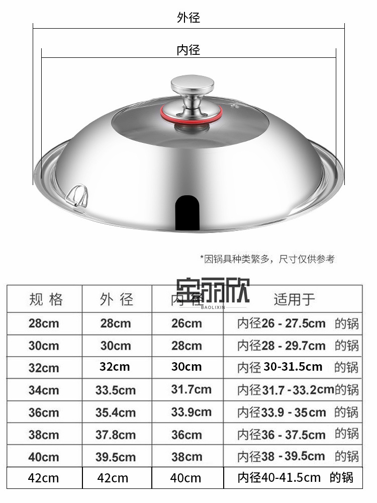 仕様 28cm蓋適用26-27.5炒め鍋,30cm蓋適用28-29.5炒め鍋,32cm蓋適用30-31.5炒め鍋,34cm蓋は32-33.5炒め鍋を適用する,36cm蓋適用34-35.5炒め鍋,38cm蓋には36-550炒め鍋が適用されます。,40cm蓋適用38-39.5炒め鍋,42cm蓋は40-41.5炒め鍋を適用する