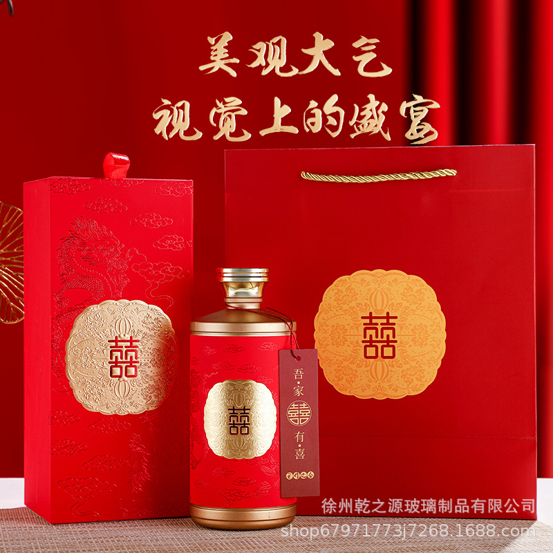 高級空瓶1斤祝宴結婚祝いガラス瓶喜酒瓶家に祝い事酒瓶家庭用結婚祝い酒瓶がある