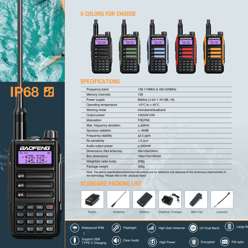 宝鋒UV-9R PRO防水インターホン9rpro大電力50キロBF-UV9R PLUSアップグレード卸売り