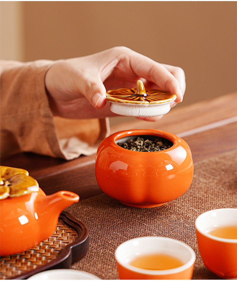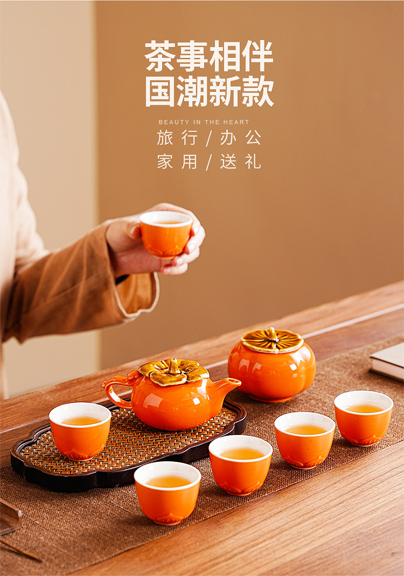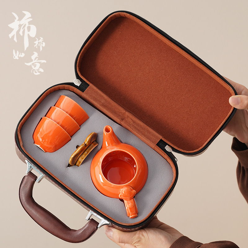 Shishi Ruyi トラベルティーセット カンフーセット 柿ティーポット セラミックティーカップ ギフトボックス ビジネスギフト
