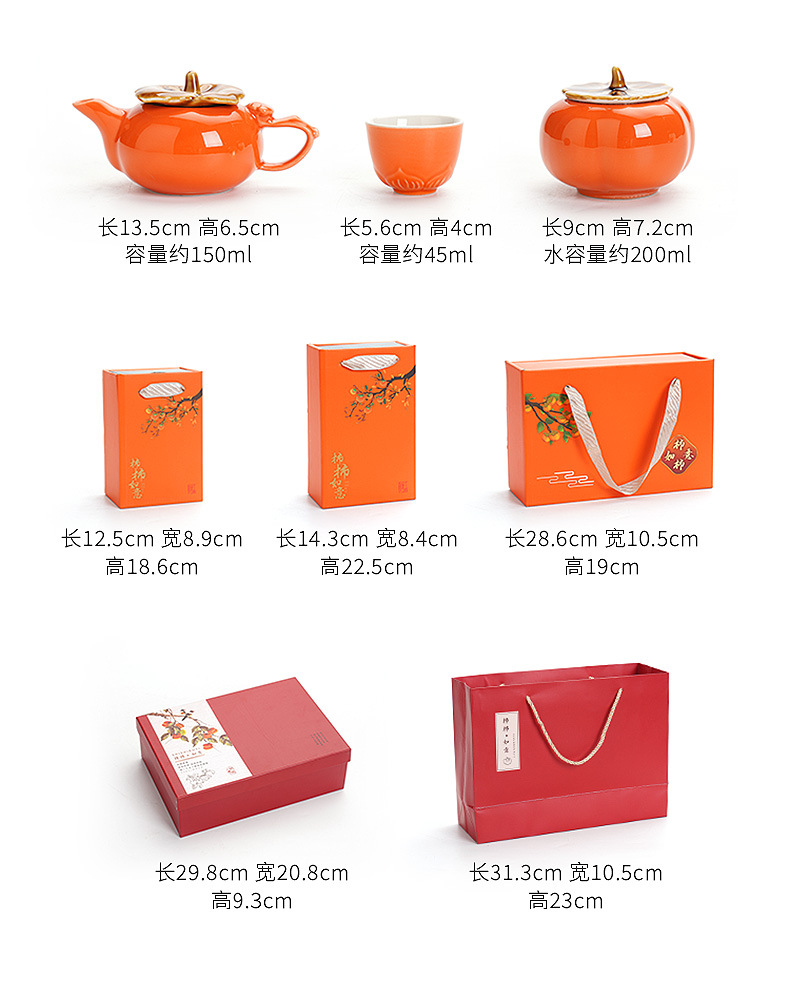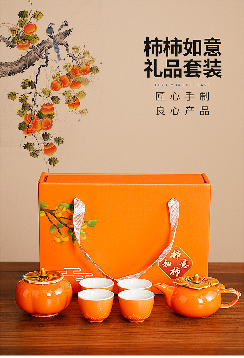 柿如意ティーセット柿ティーポットティーカップすべてギフトボックスお土産カスタムフルセットセラミックギフト小